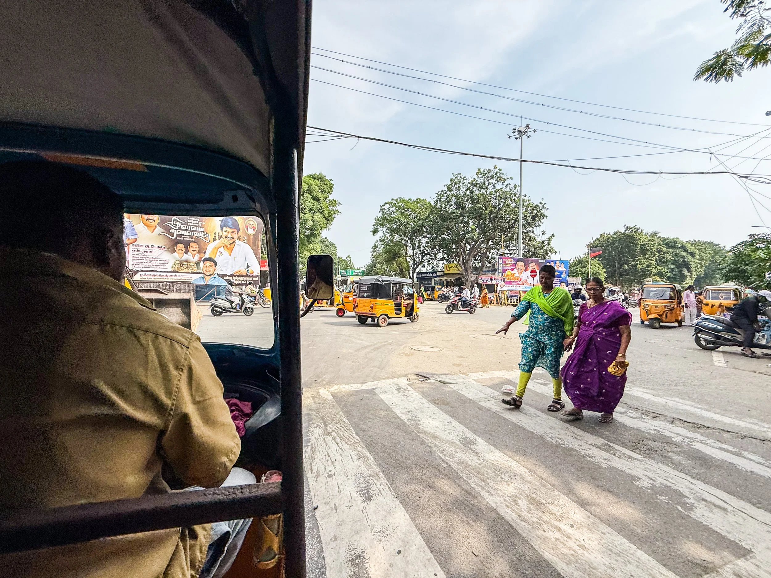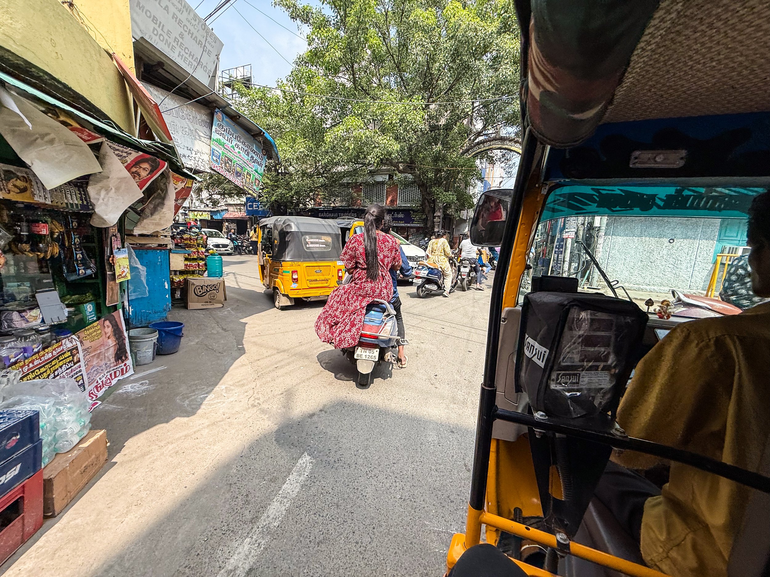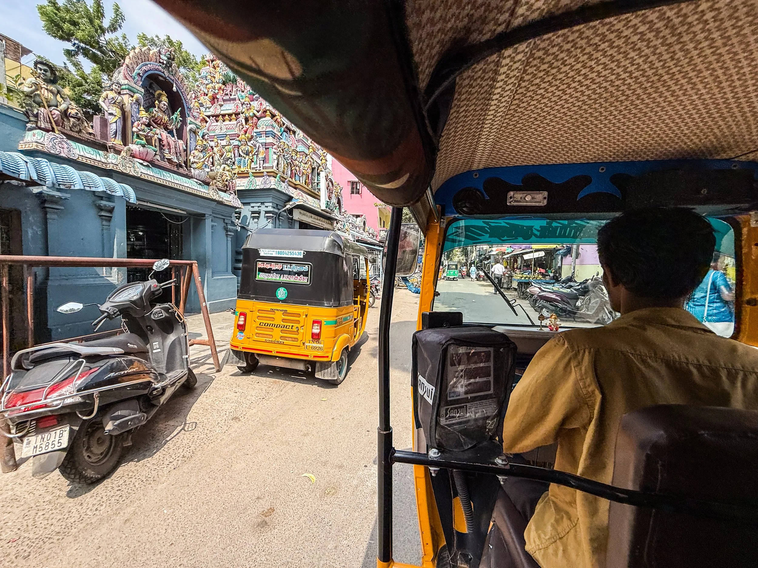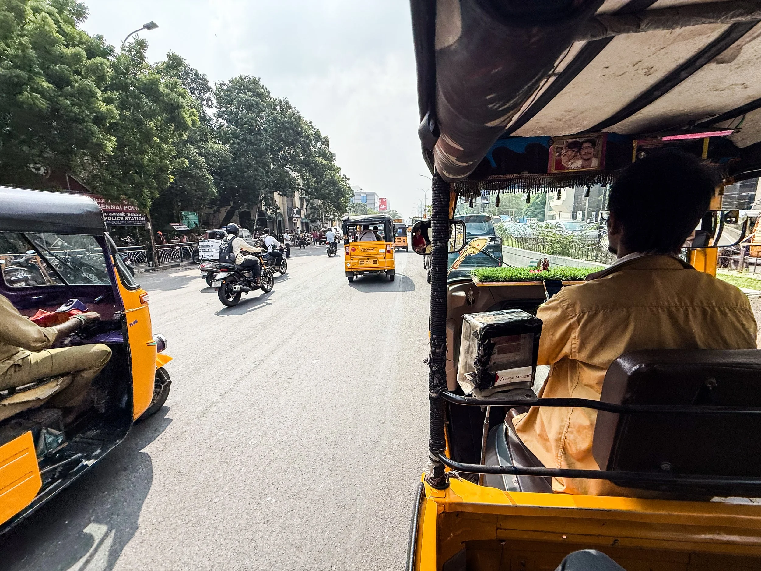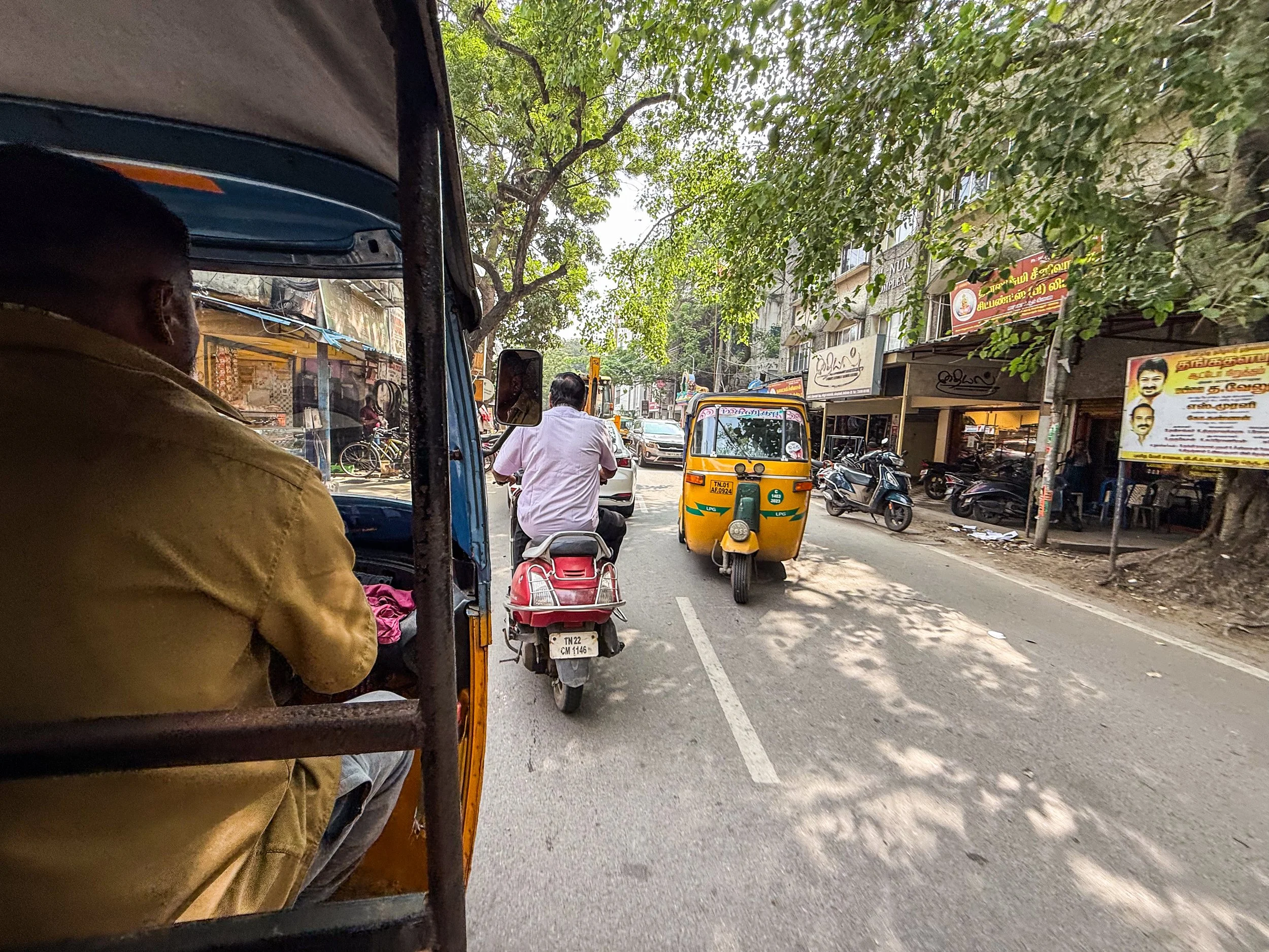 Chennai was the first time that I realised that you can now call rickshaws on Uber! They’re a helluva lot cheaper than normal cars, and they are a much more “Indian” experience, so we took them everywhere in Chennai. With the exception of the final night when we made the mistake of taking a rickshaw through a rainstorm, it was quite fun. The ceilings and dashboards of many of these little vehicles had been decorated to reflect the personalities of their drivers, which is not something I’d seen elsewhere in India. Here’s a gallery of the views from the back of these noisy little golf carts as they drove us back and forth across Chennai. I can still feel the warm breeze hitting my face and hear the sounds of the street when I look at these pictures…