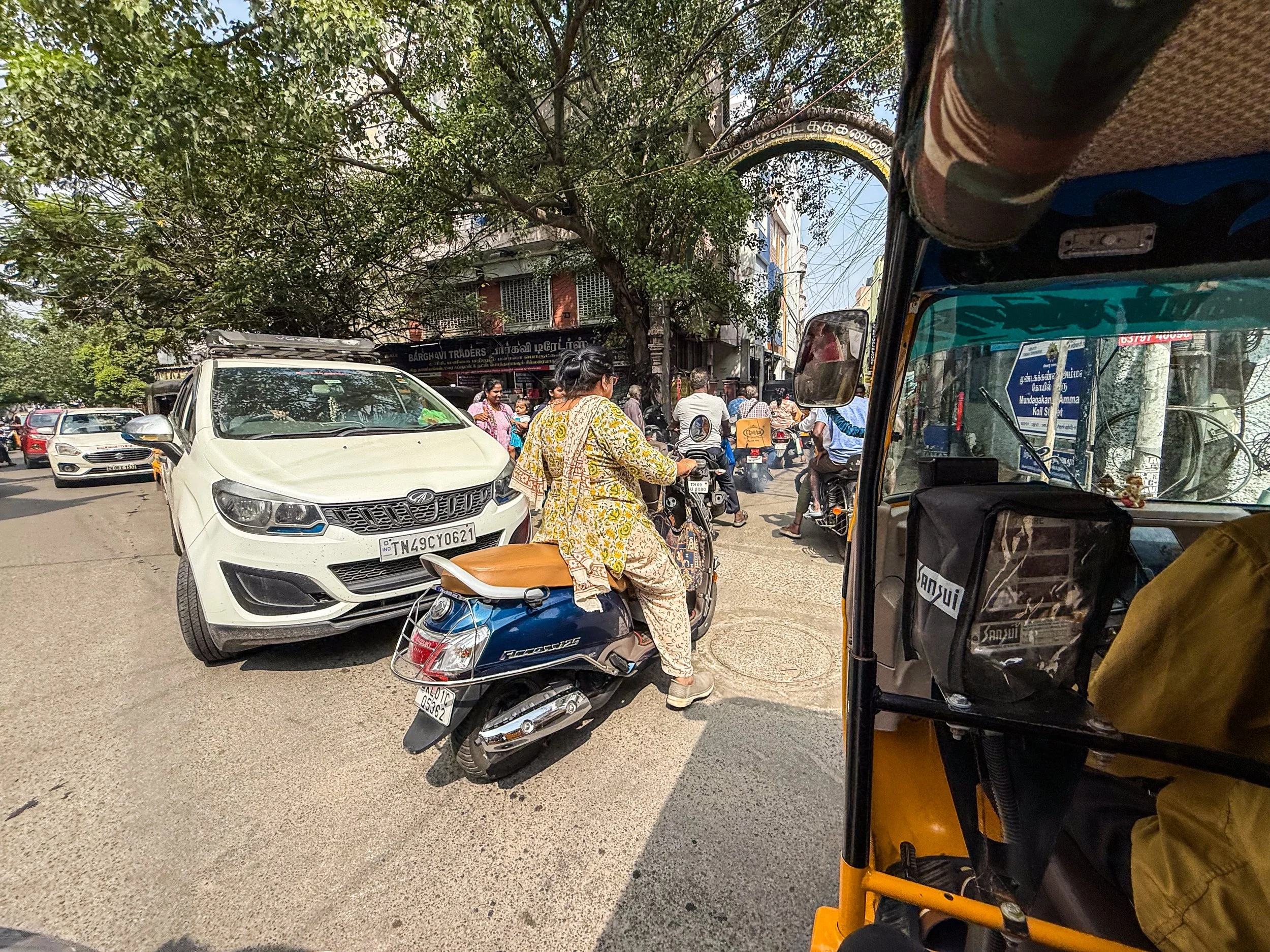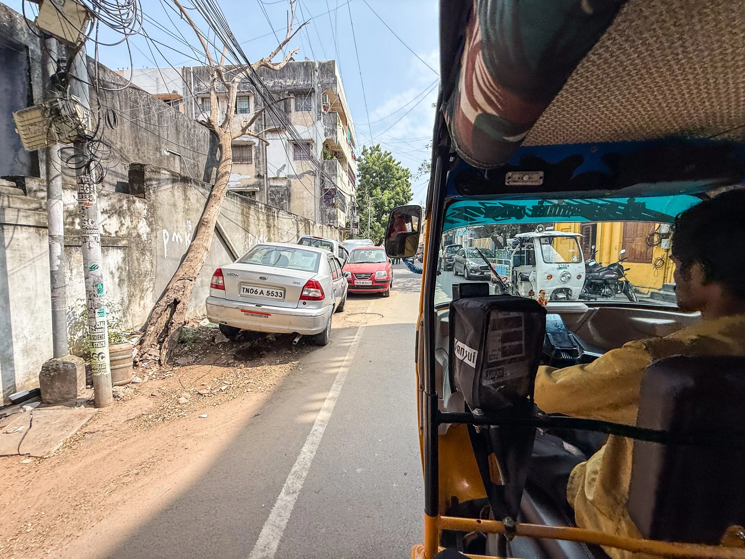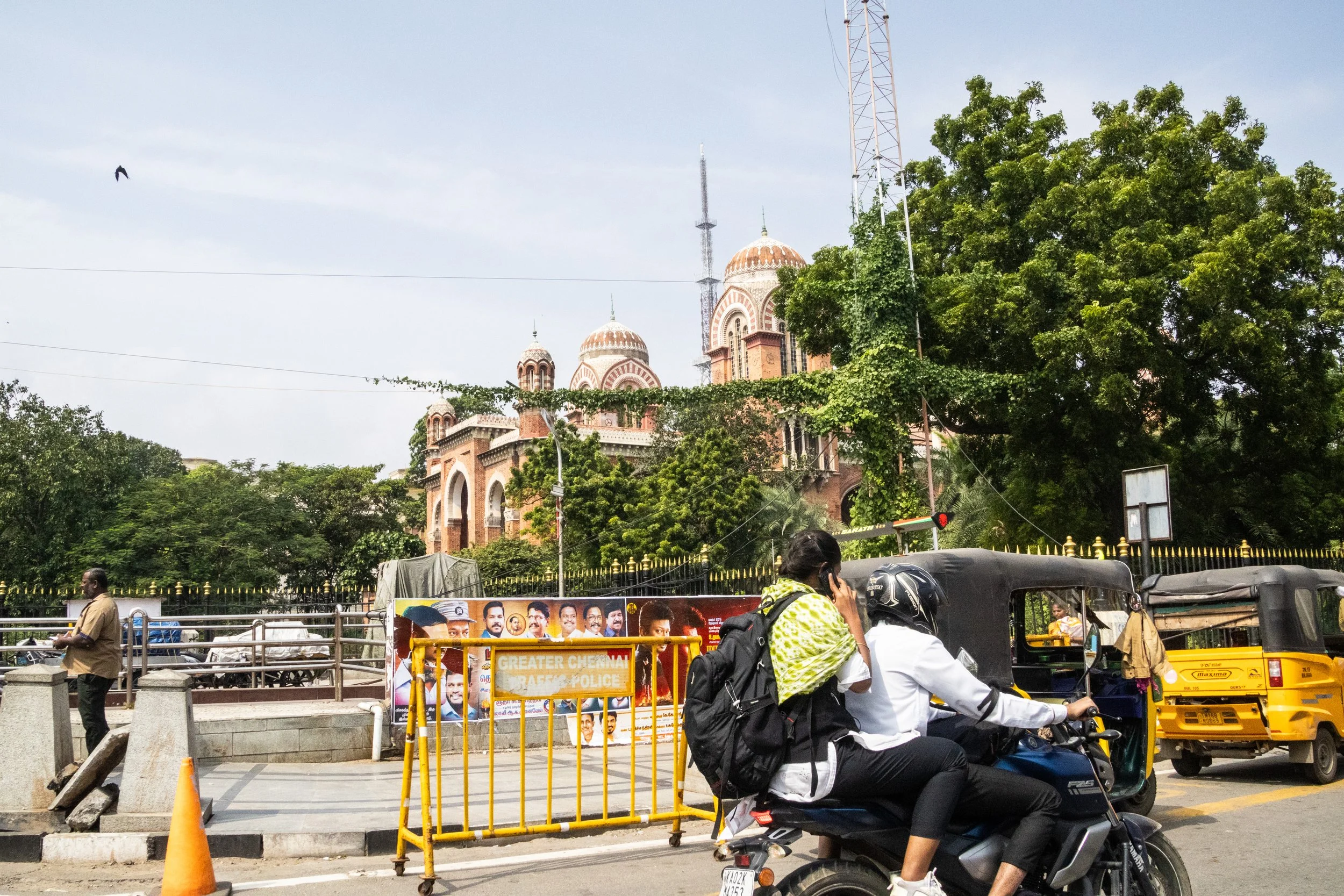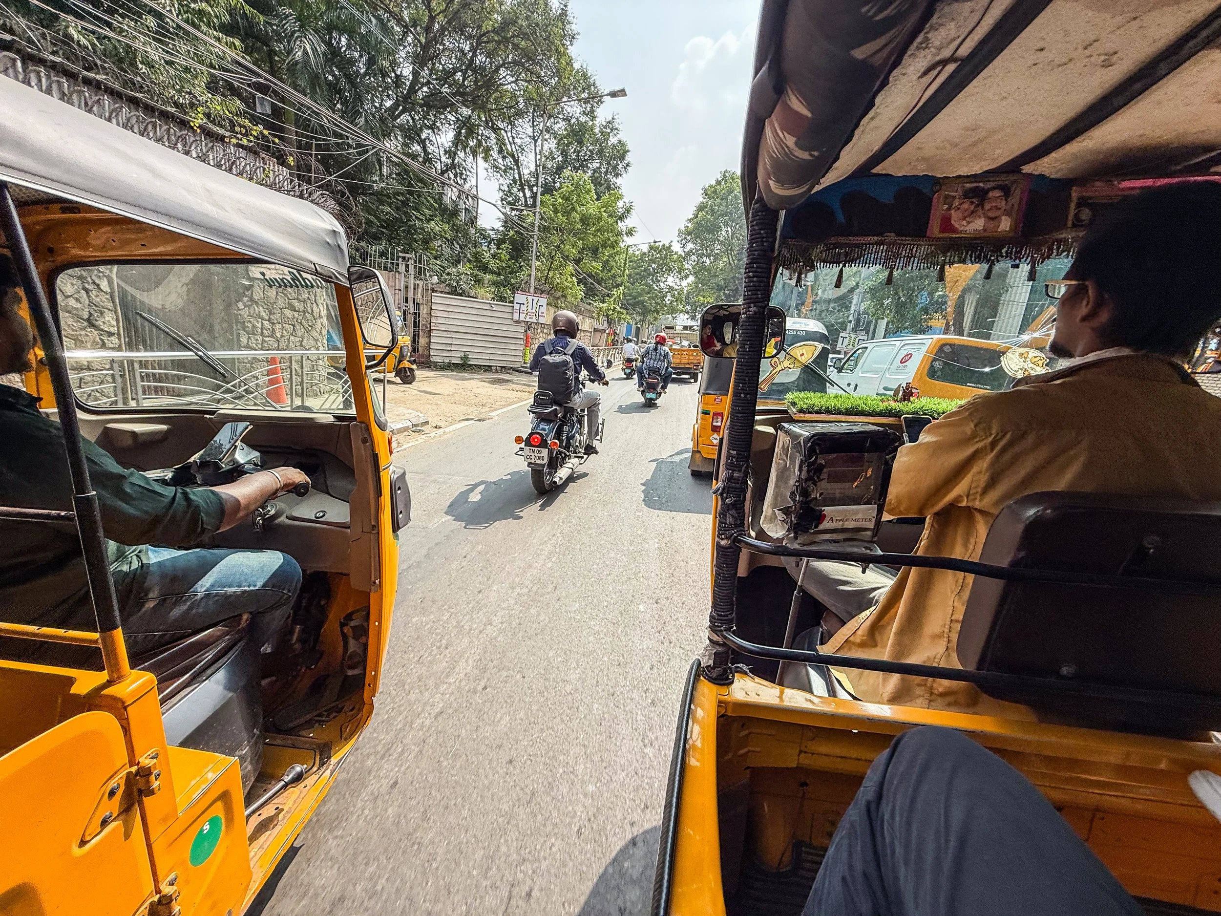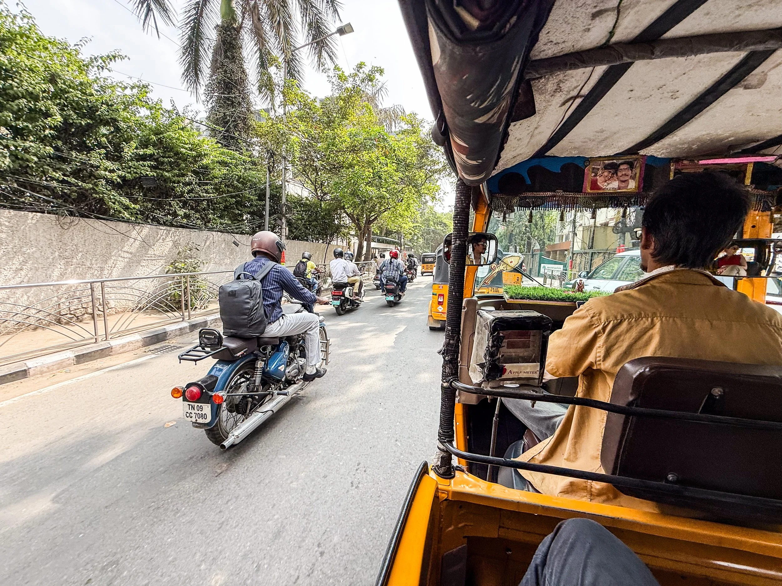 Chennai was the first time that I realised that you can now call rickshaws on Uber! They’re a helluva lot cheaper than normal cars, and they are a much more “Indian” experience, so we took them everywhere in Chennai. With the exception of the final night when we made the mistake of taking a rickshaw through a rainstorm, it was quite fun. The ceilings and dashboards of many of these little vehicles had been decorated to reflect the personalities of their drivers, which is not something I’d seen elsewhere in India. Here’s a gallery of the views from the back of these noisy little golf carts as they drove us back and forth across Chennai. I can still feel the warm breeze hitting my face and hear the sounds of the street when I look at these pictures…