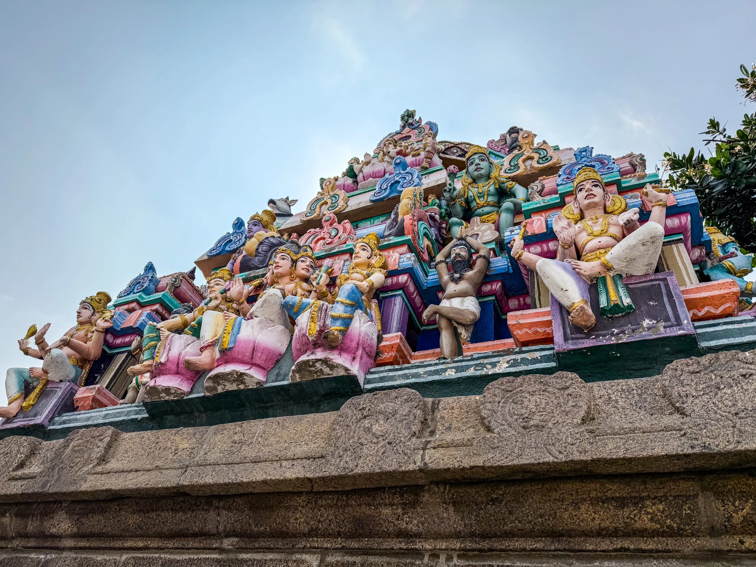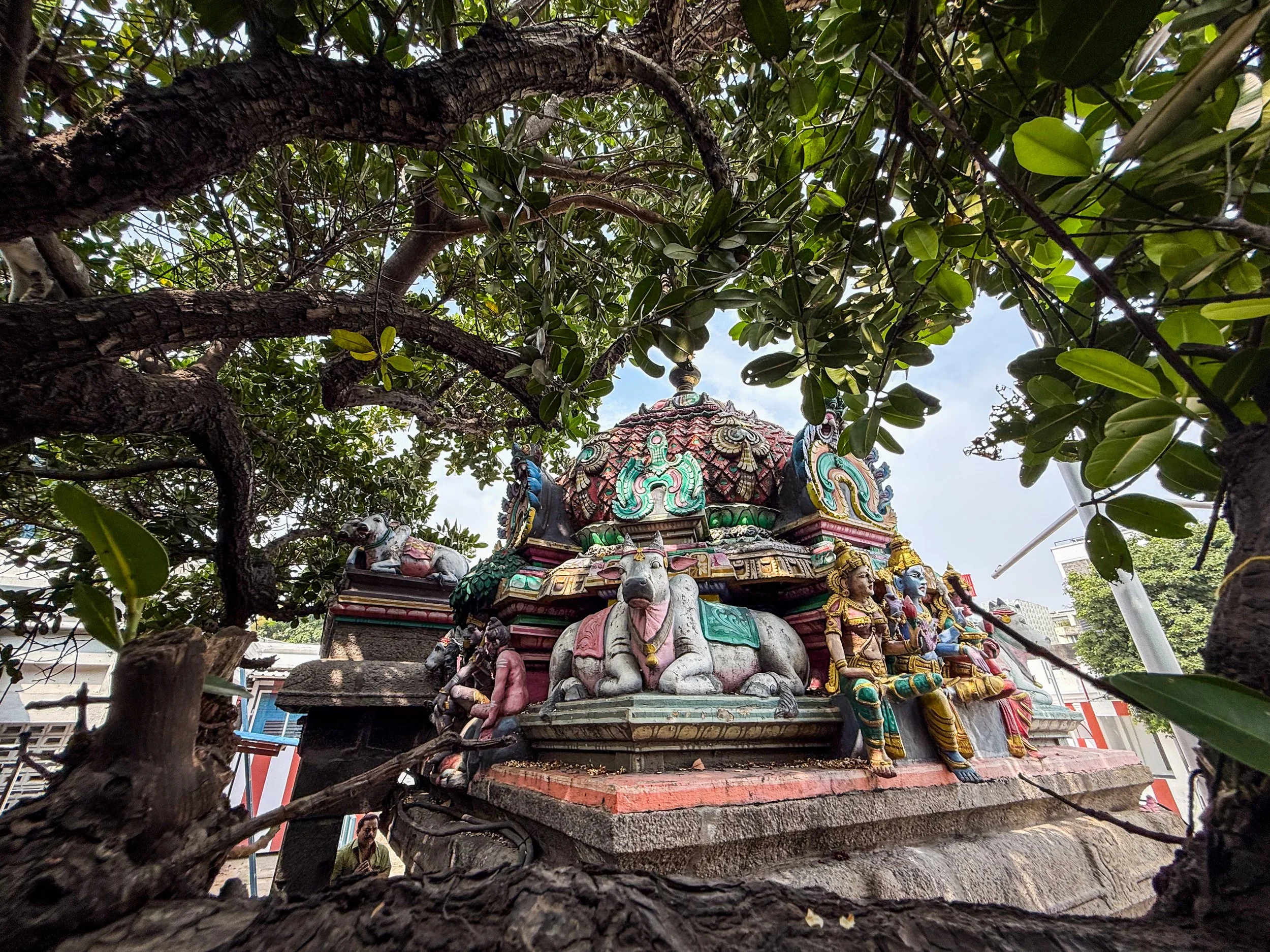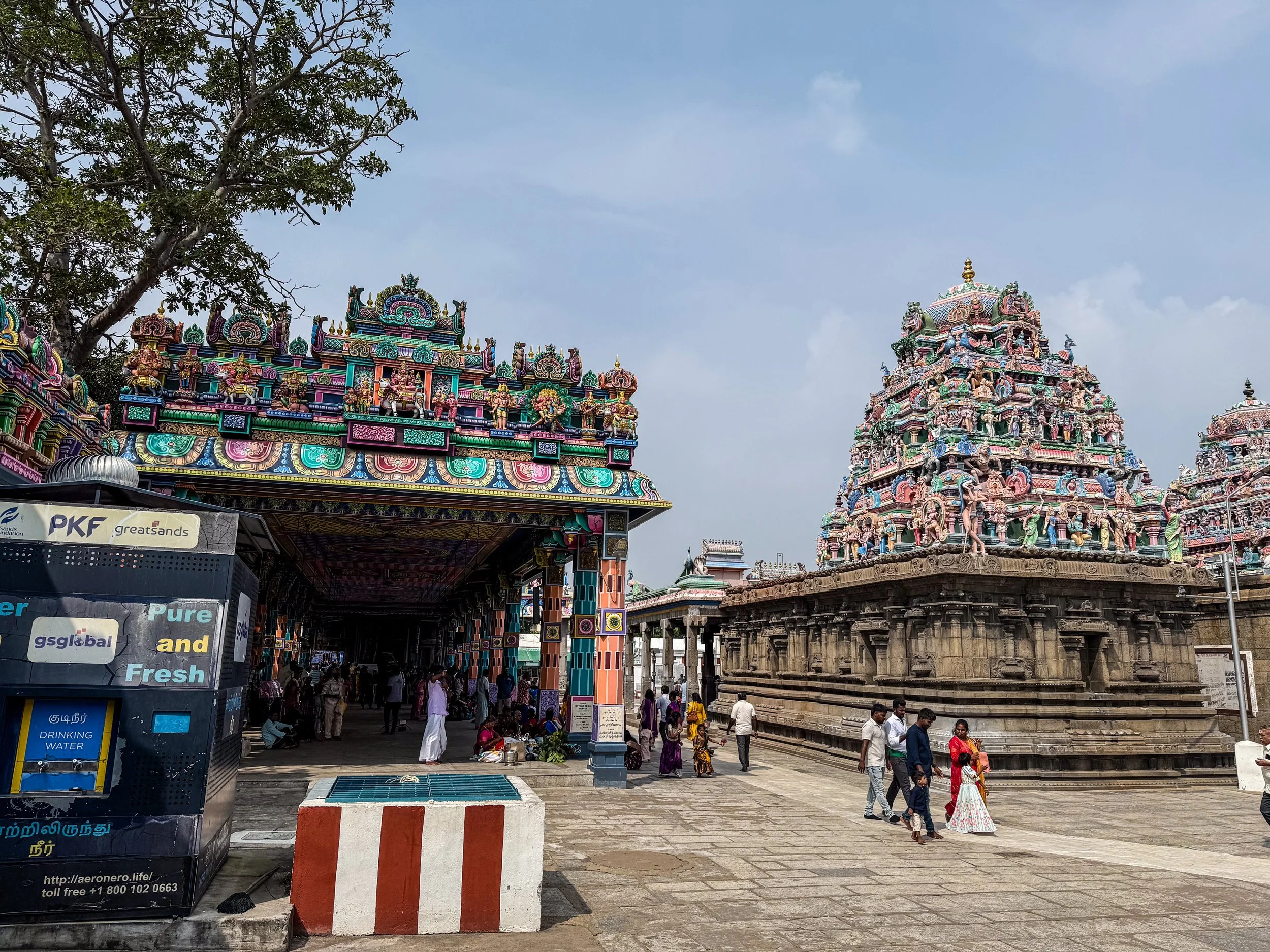It’s a Hindu temple dedicated to Lord Shiva, and it an excellent example of Dravidian architecture. It’s most distinct features are its towering, colorfully sculpted “gopurams”. These are steep pyramids that mark the entrances to the temple, which are so covered in ornate, brightly-painted figurines that you can barely see the structure beneath them! It’s like one of those crowded classical paintings come to life. These towers are SO intricate and yet so tall and steep, that they are bit difficult to observe or appreciate, especially with the mid-day Indian sun beating down on them. The rest of the temple complex is also fascinating to explore, as it is not just a tourist attraction, but an actively functioning temple! All around us, colorfully dressed locals went about their business and there were many rooms where non-Hindus (like me) were not allowed to enter. We knew this because some guy appeared to us like an apparition when we entered the temple and served as our guide whilst we were inside. He did ask for money at the end (which he claimed would fund the temple), but that’s okay; he’d earned it by that point.