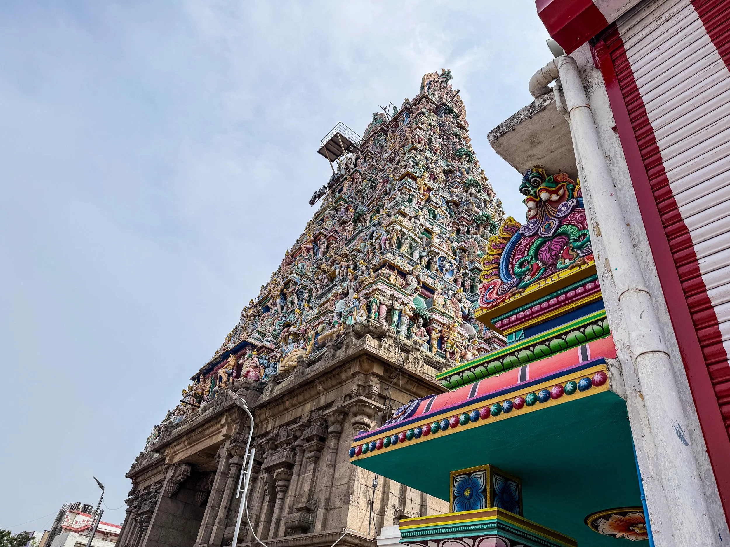 Kapaleeshwarar Temple is one of the few tourist attractions that Chennai has to offer, and (therefore) it’s very much worth a visit. Today it’s located in a neighborhood called Mylapore, which has been a sacred site for more than 1,000 years, but the exact location of this temple was originally a bit closer to the sea. This temple was apparently damaged by Portuguese colonists in the 1500s, and had rebuilt in its current location by the mid 1600s.