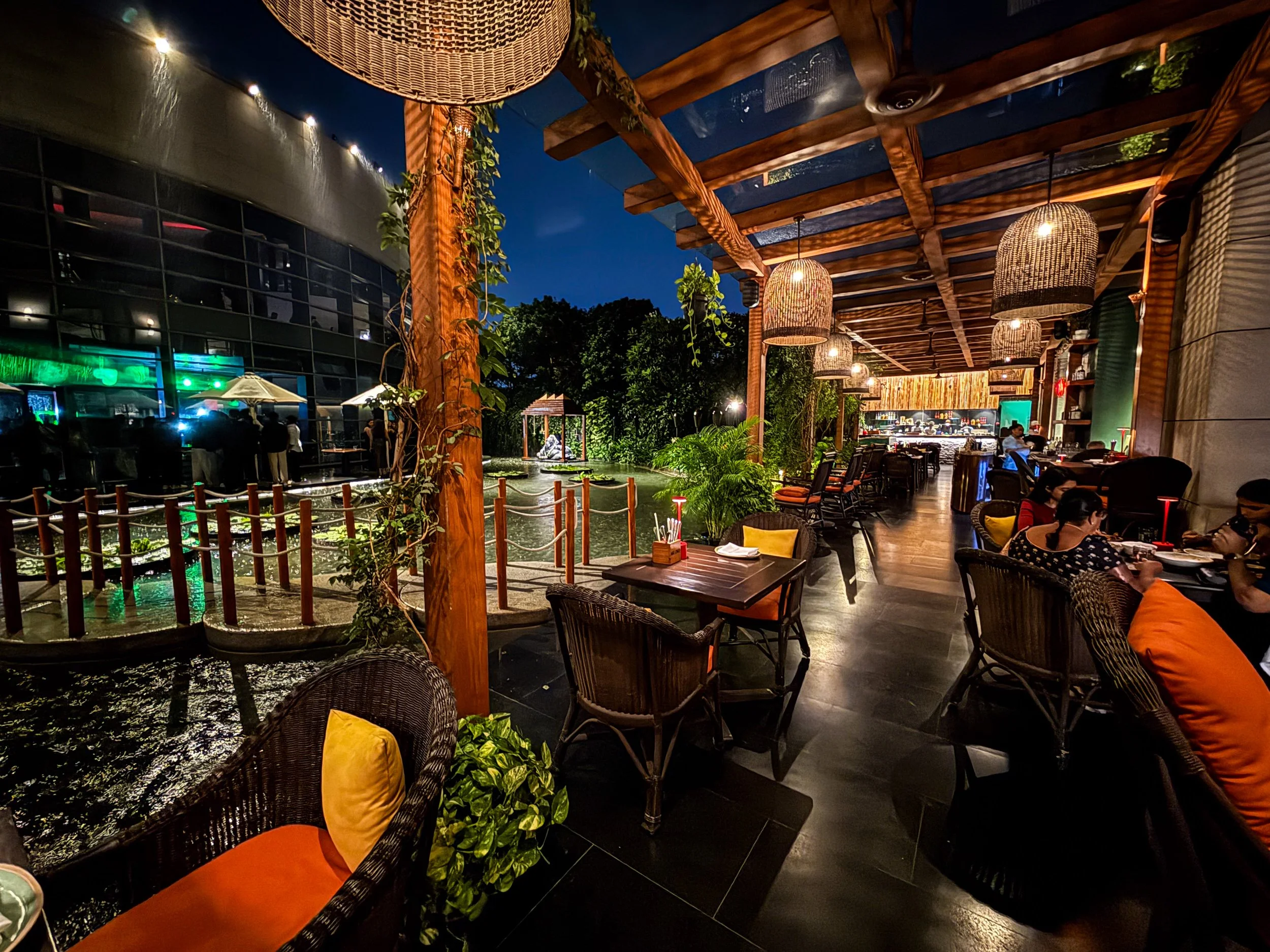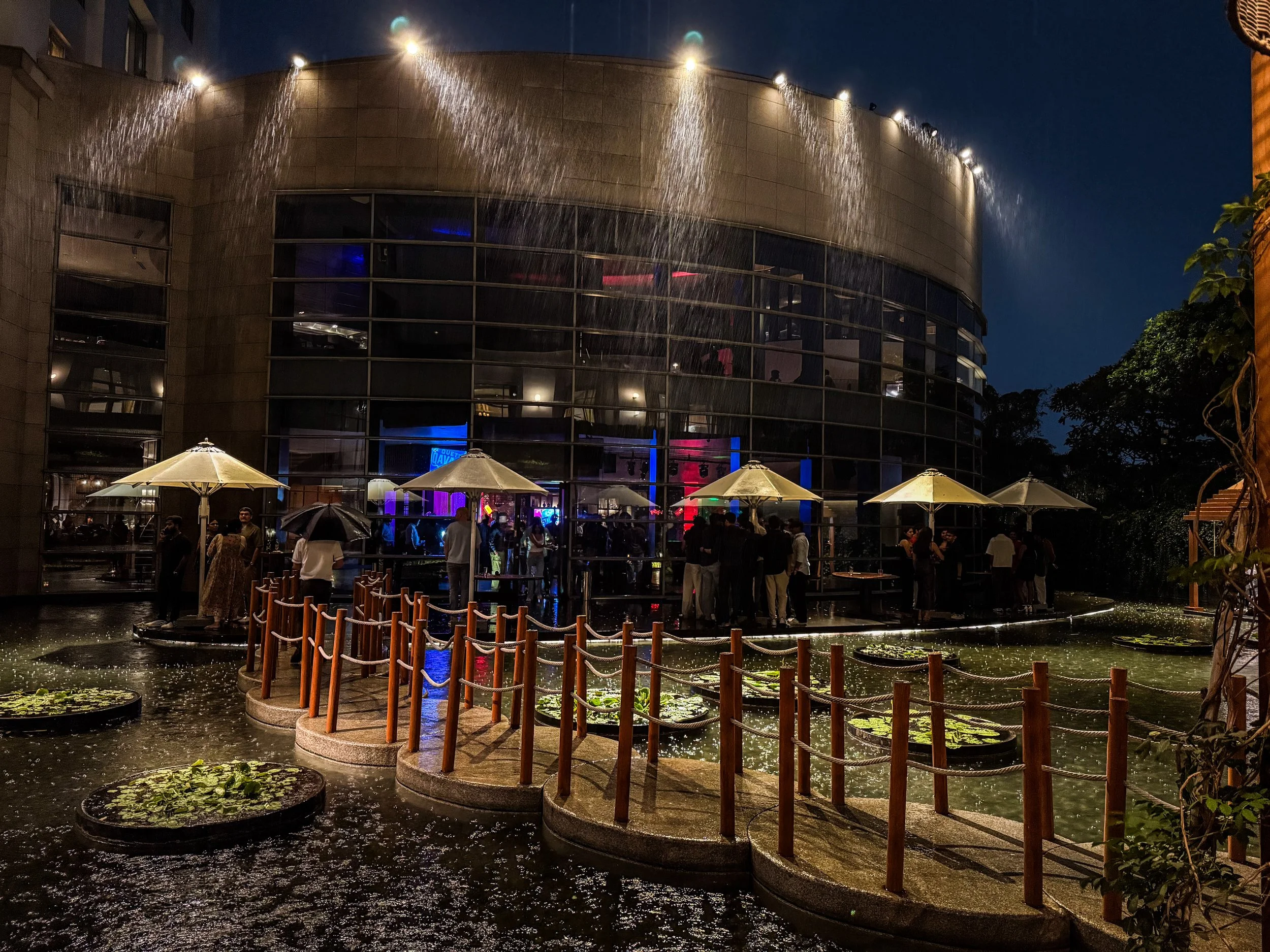 I said that I hope to come back to Chennai on business one day… and in the very unlikely event that I don’t stay at the Raintree again, I’d go to the Park Hyatt. On our final night in Chennai, before flying back westward, I had the best Butter Chicken of my life here, right before the restaurant turned into a club, complete with a live DJ and giant bottles of Grey Goose. There is some luxury here if you know where to look! Outside, there was a beautiful pond full of massive water lilies and lotuses. It was raining cats and dogs, so we sat under the shelter and concluded our night out with a cup of tea. It was very relaxing until I began to wonder whether the weather would cause any sort of flight delay…
