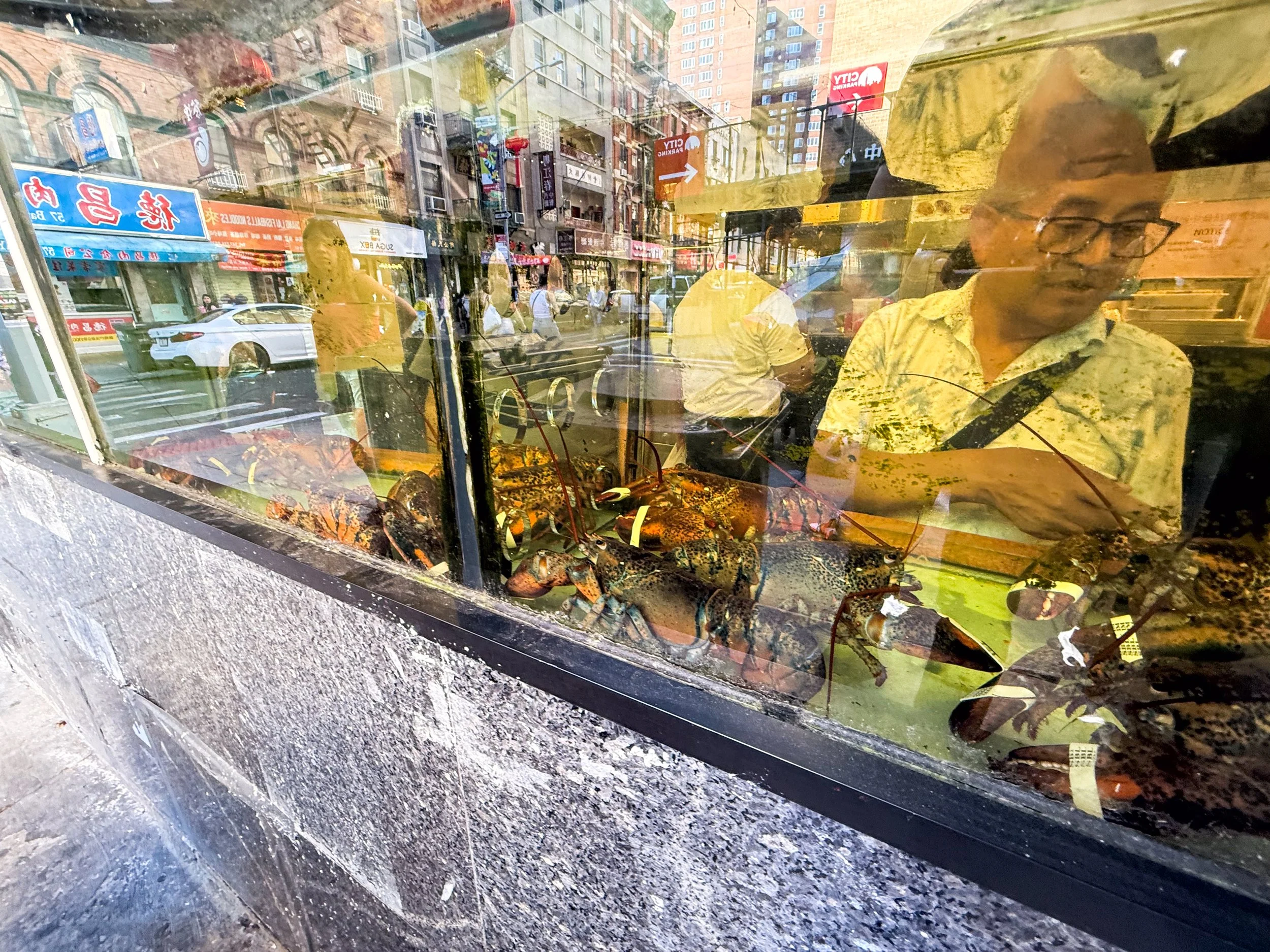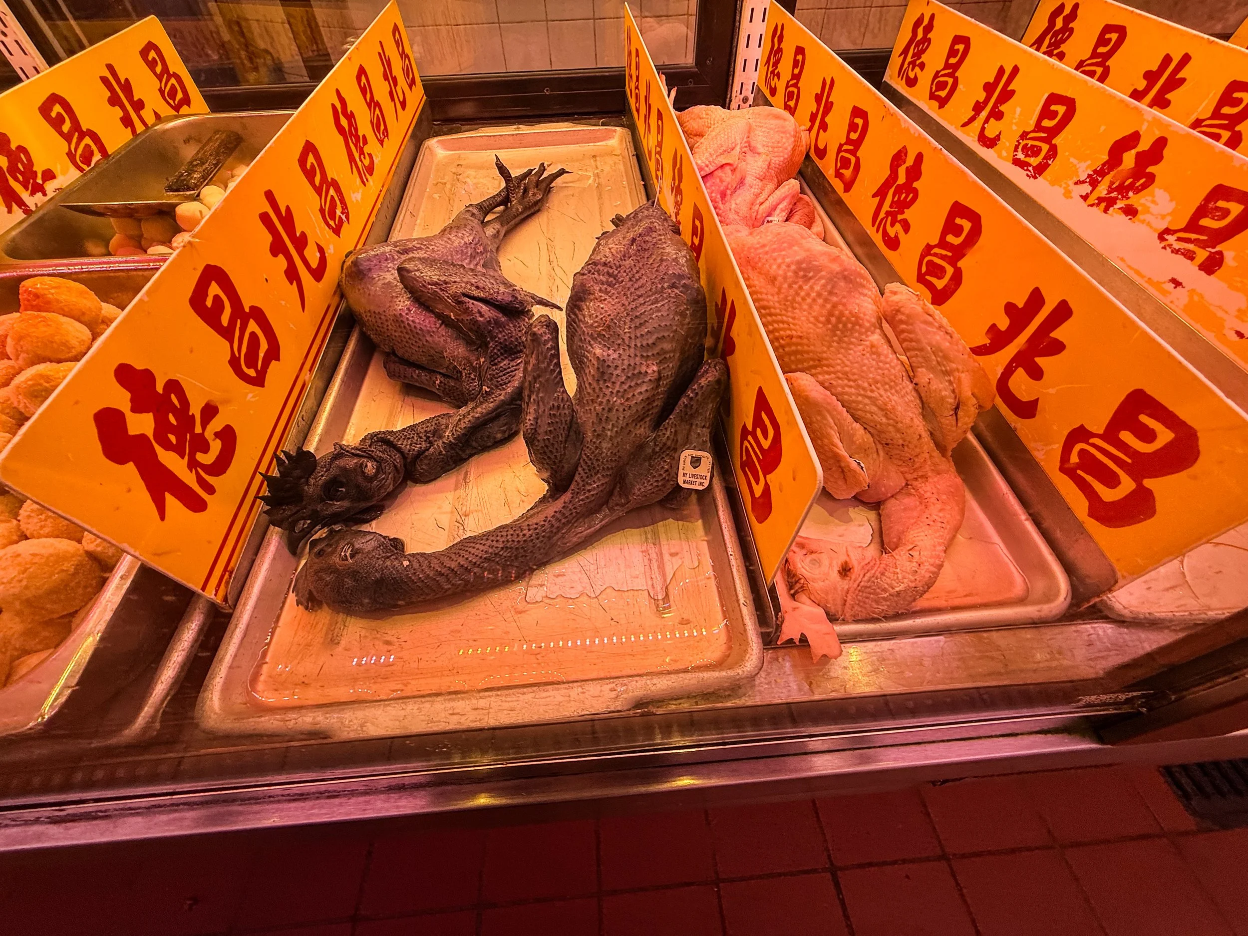 Walking the streets of Chinatown is an experience! The building stock itself is much the same as anywhere else in the city (with a few obvious exceptions, such as the out-of-place traditional structure used as the cover photo for this article) but that is where the similarities end. NYC’s Chinatown is about as close to China as you can get in North America, aside from perhaps certain parts of the San Francisco Bay area and the Vancouver metro area. Every storefront is a Chinese grocer—often specializing in a single good, such as seafood, meat, or vegetables—a Chinese restaurant, a textile-based business of some sort, a massage parlor, or some variety of cultural organization. There are Chinese lanterns hanging everywhere, and the flags of China and Taiwan are never out of sight. When you cross into this neighborhood, the street performers have switched from western instruments to the erhu, and signage tends to be first in Chinese characters, and then in English. But this is New York, and you have free reign to walk into any storefront that looks interesting to see what’s going on! Personally, I love walking into Asian grocery stores, especially the ones that specialize in seafood. Across much of East Asia, going to the seafood section of a grocery store is a similar experience to Monterrey Bay Aquarium; the diversity of sea creatures in tanks or packed on ice is always insane.