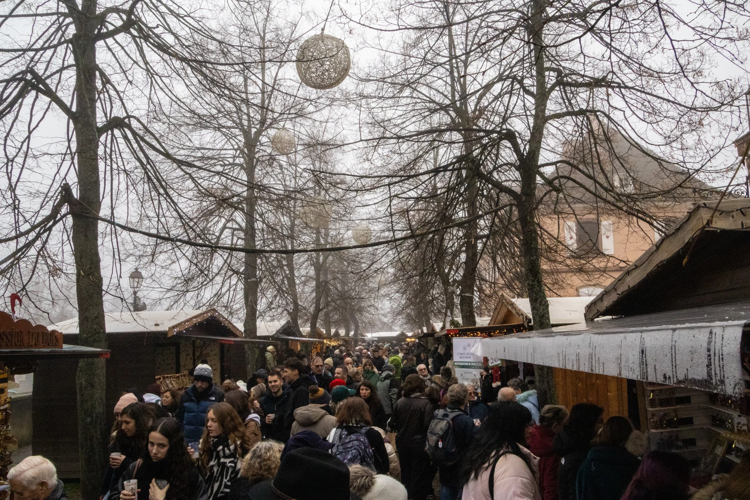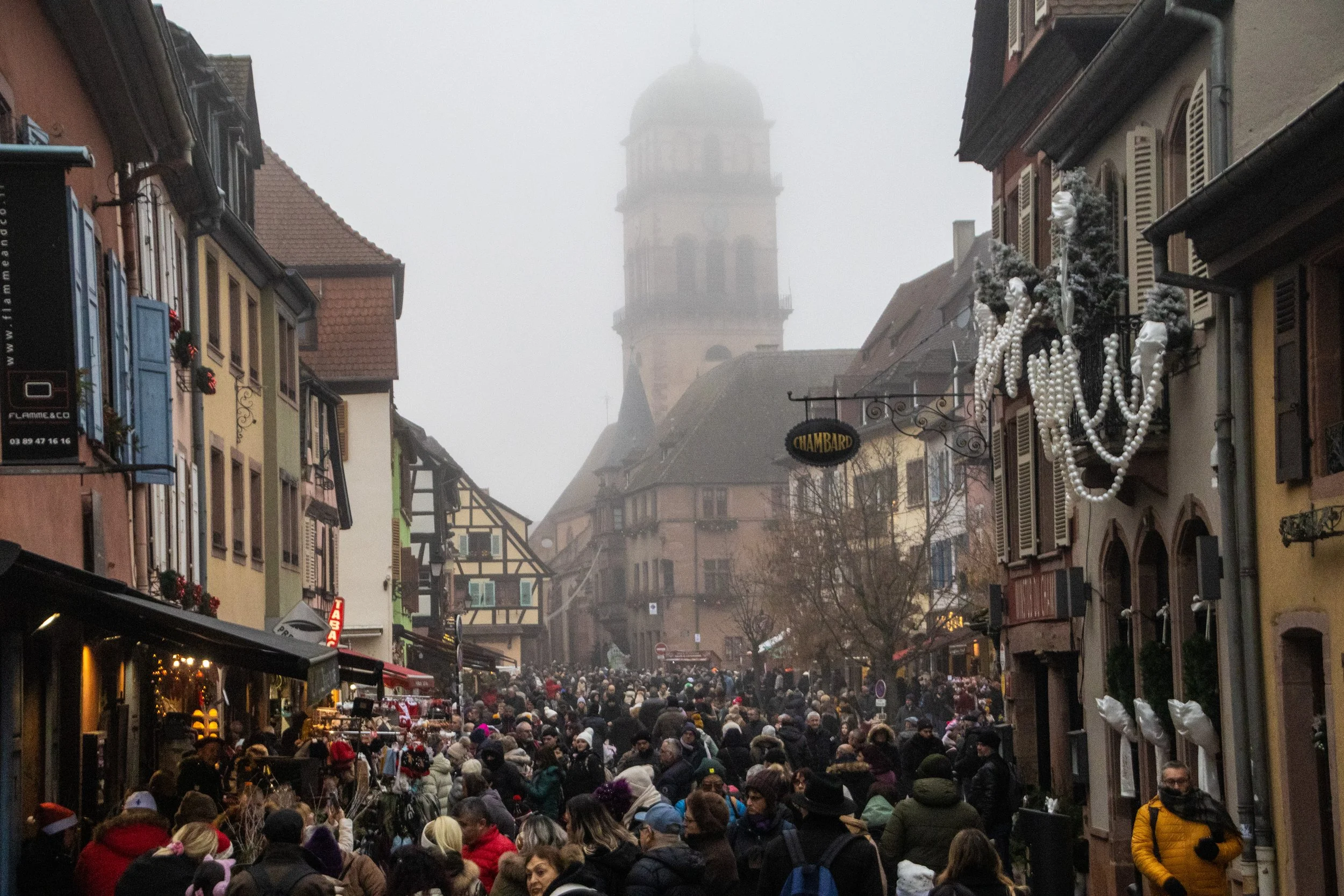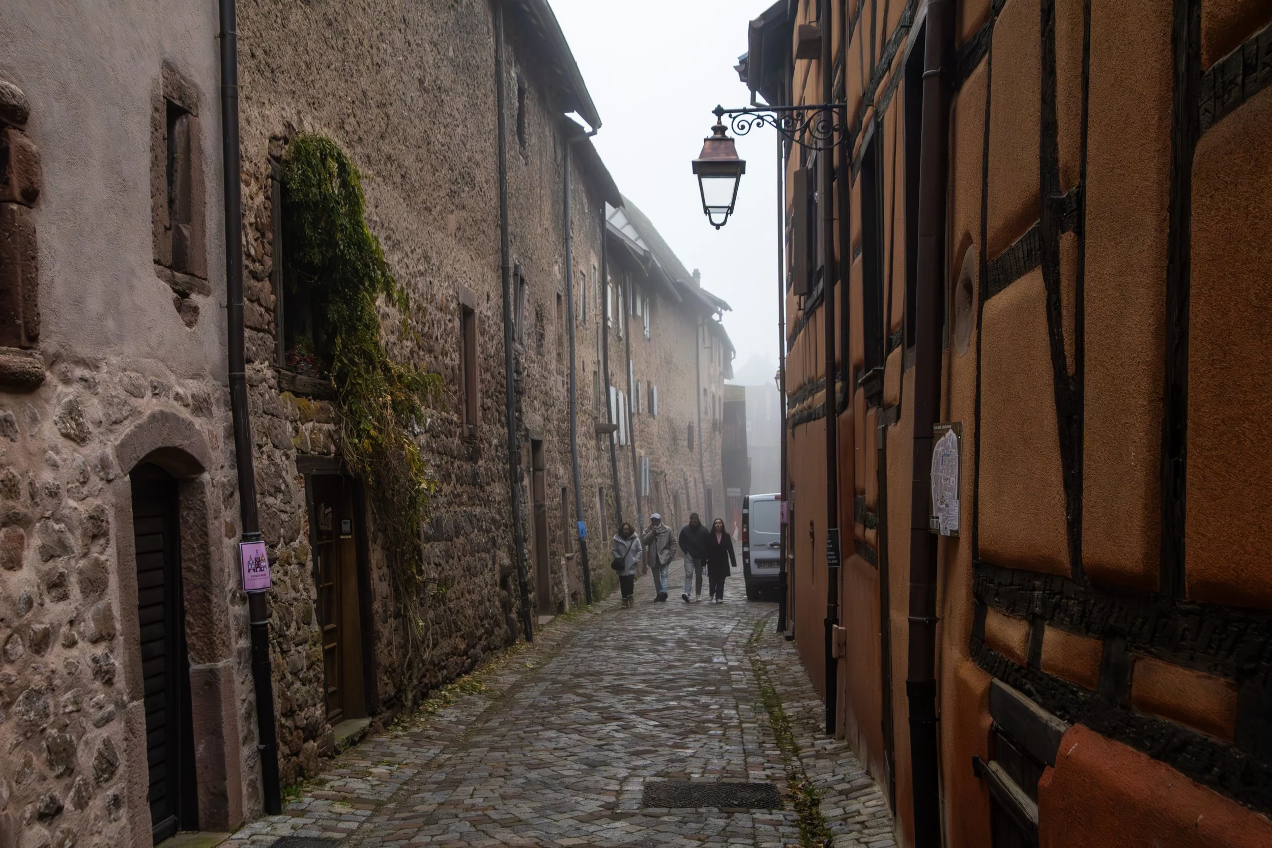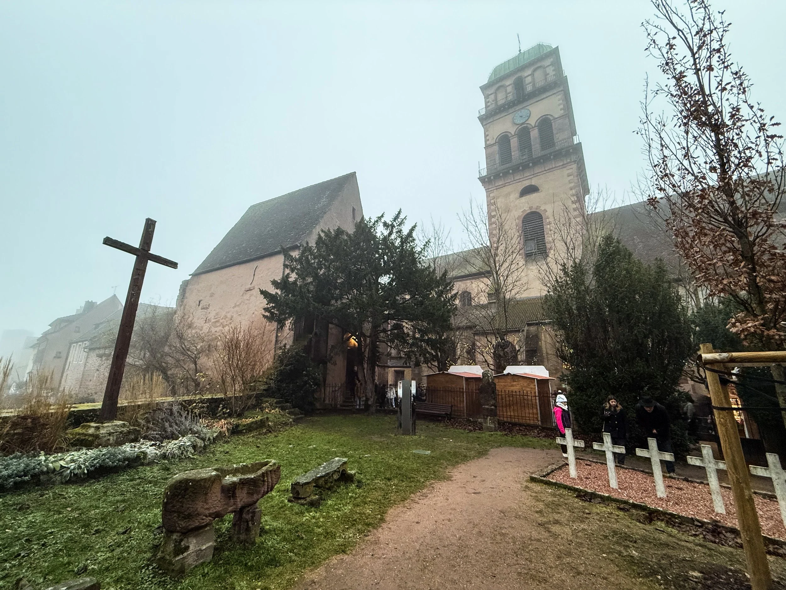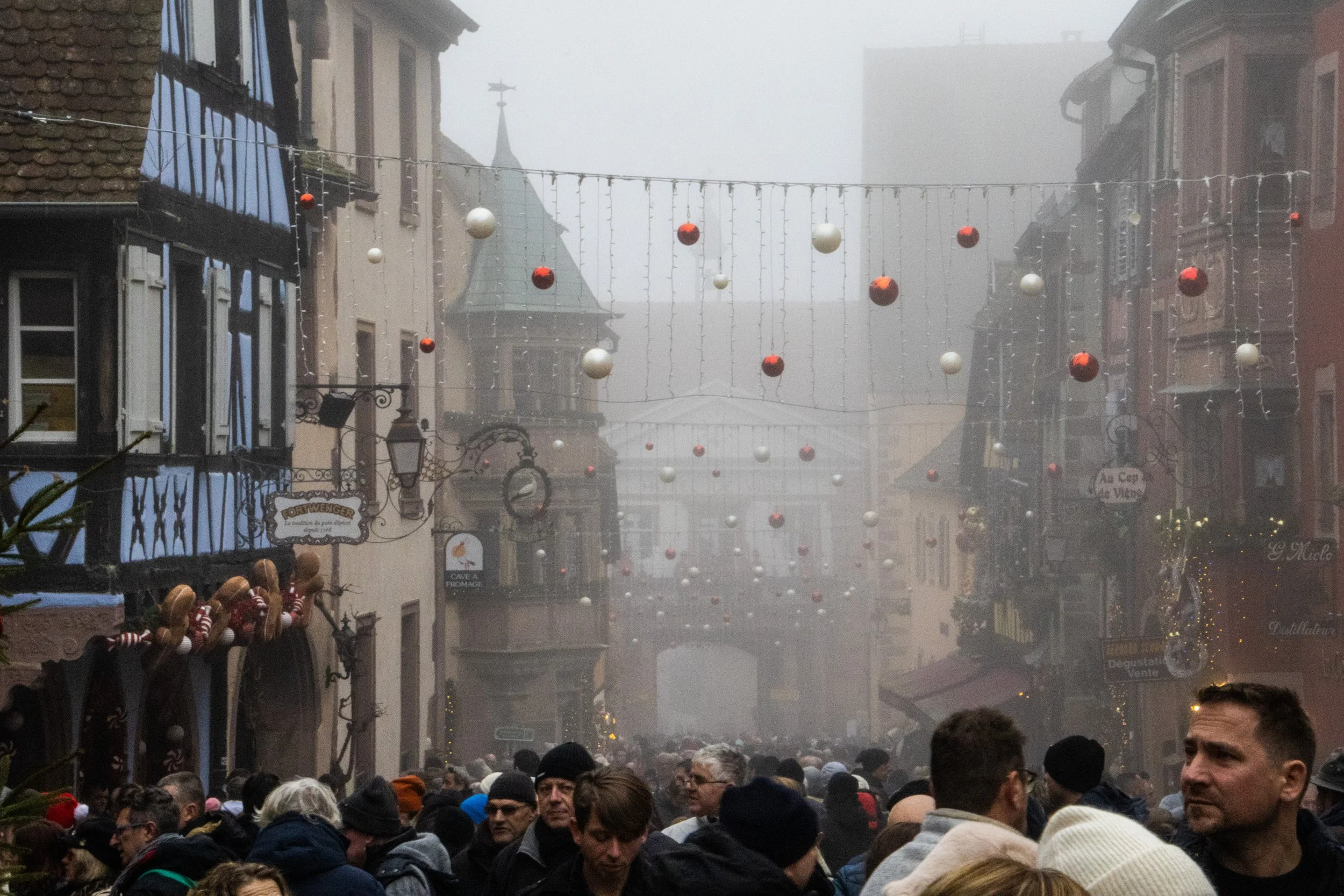 So, by the time we arrived at the entrance to the medieval town, there was little doubt left as to whether or not I would be able to find vin chaud here. It was omnipresent in this region, and I as grew ever colder, I became increasingly dependent on it to keep from shivering. But, in the dreary, penetrating cold, the best way to keep warm was to keep moving, and the charm of this town provided plenty of potential destinations. The gallery below will move chronologically, starting with the foggy vineyards, walking through the outskirts of the town, eventually entering the bustling Christmas Market at the town’s center.