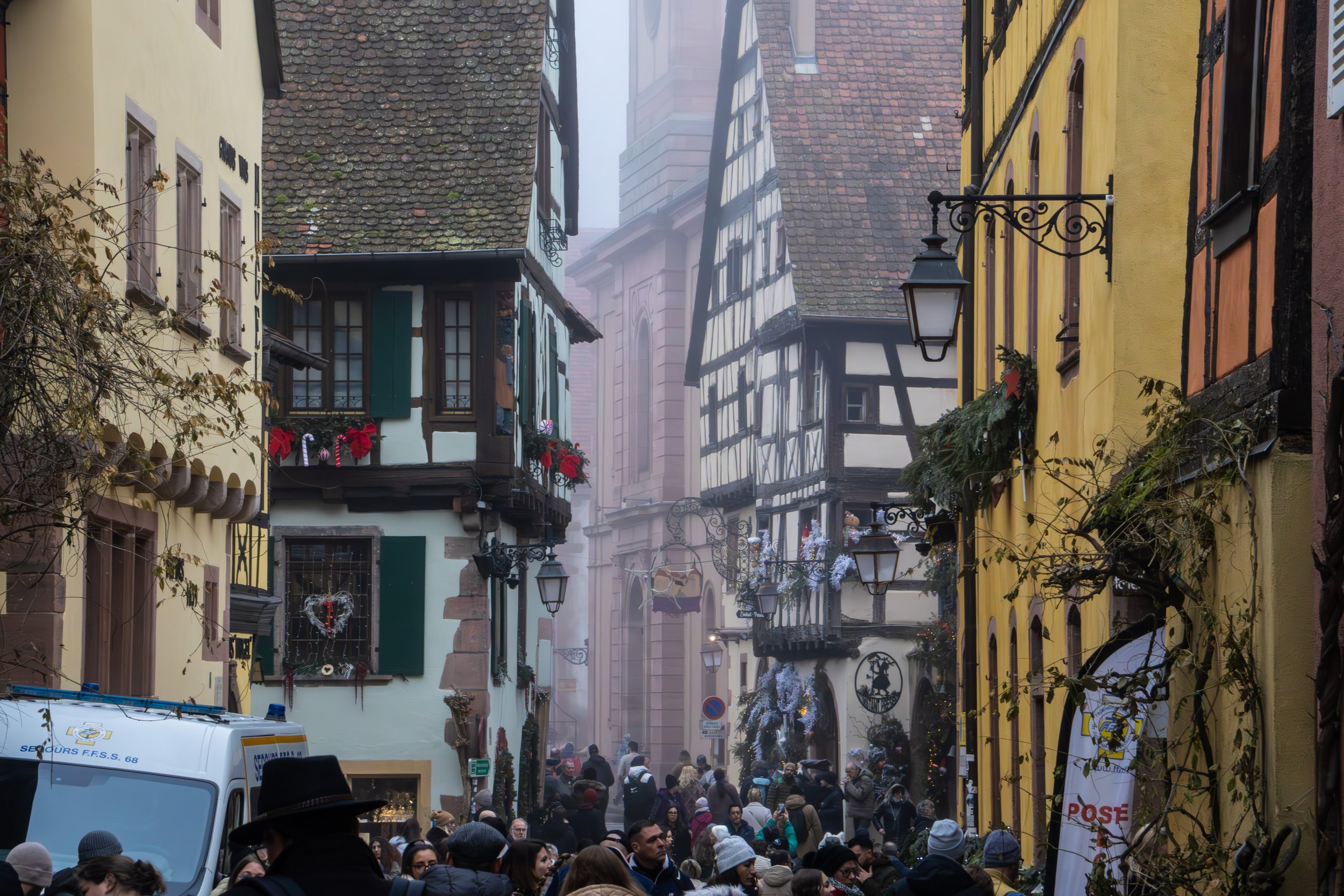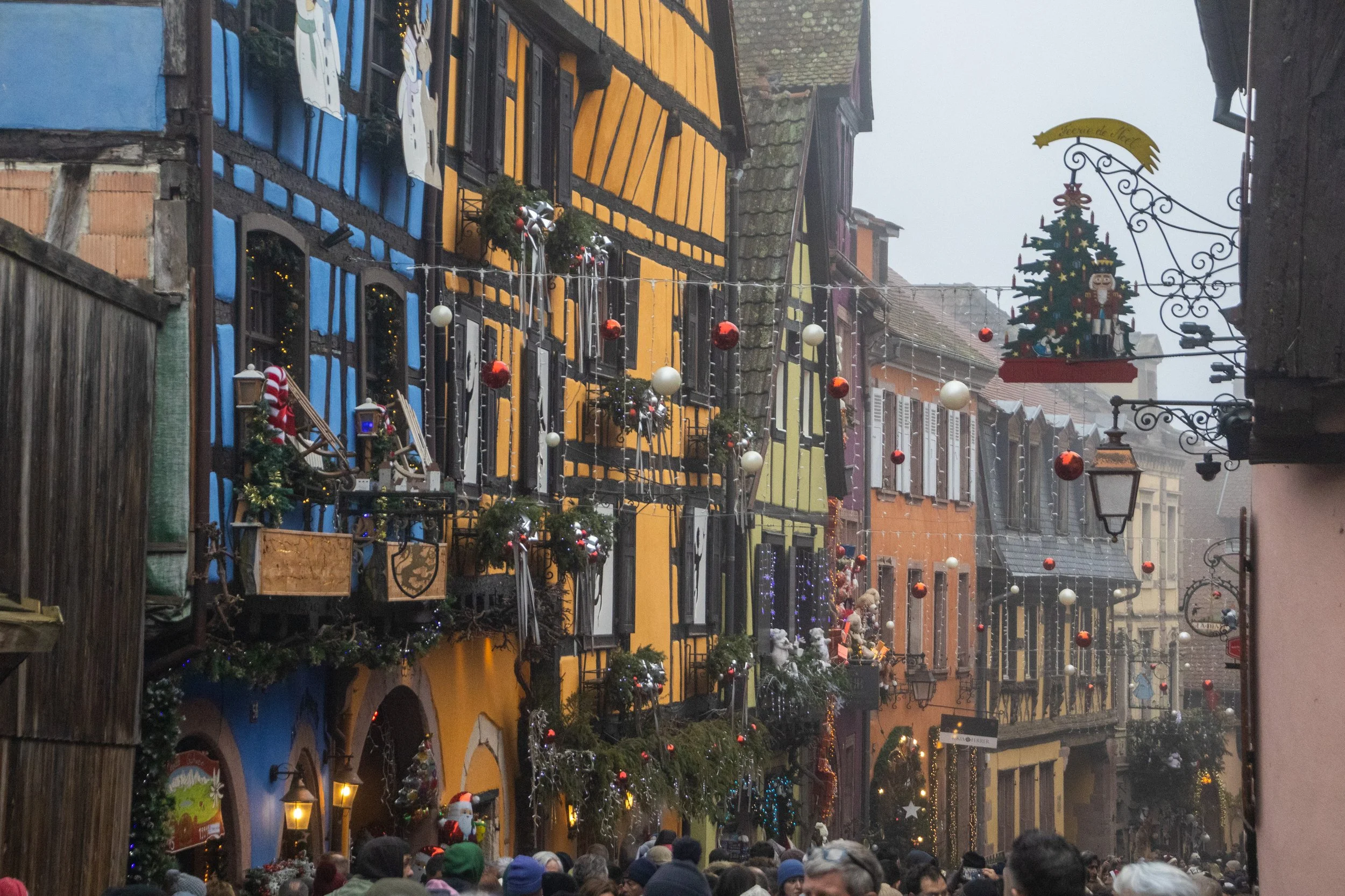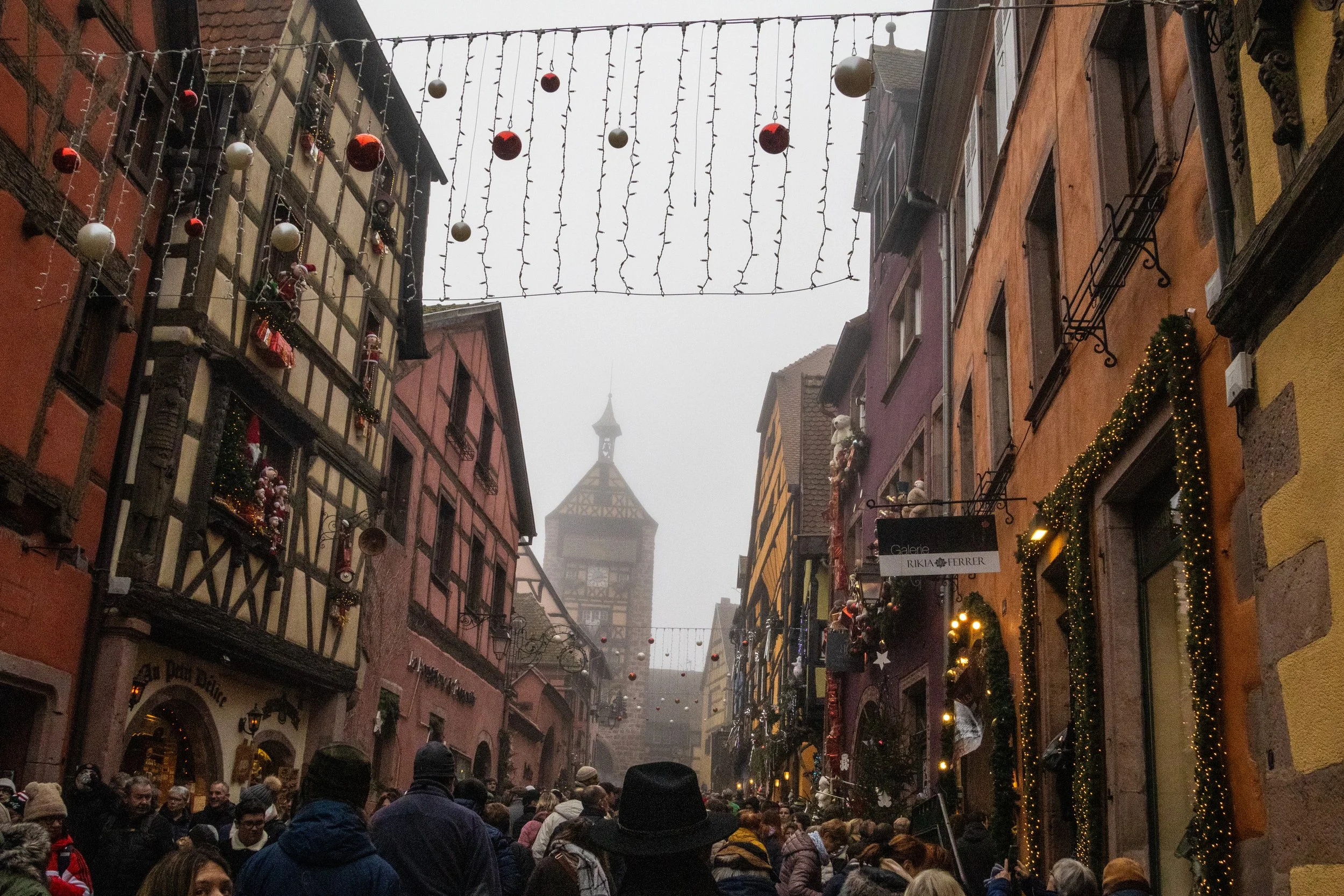 Anyway, Sélestat is about a ~20-minute drive from the places we’ll be visiting today! But this is not a historical expedition; we’re going to visit a few more present-day Christmas Markets! During the holiday season, Christmas Markets are an entire sub-category of tourism in Europe, especially central and northern Europe. You can find them all over the place, but Strasbourg, whose markets we covered in the previous article, is well-known to be one of the best around. But that market isn’t an island; a LOT of the small villages throughout this region have their own festivities. And today, we’re going to take a roadtrip to visit 2 of them. The towns are called Riquewihr and Kaysersberg.