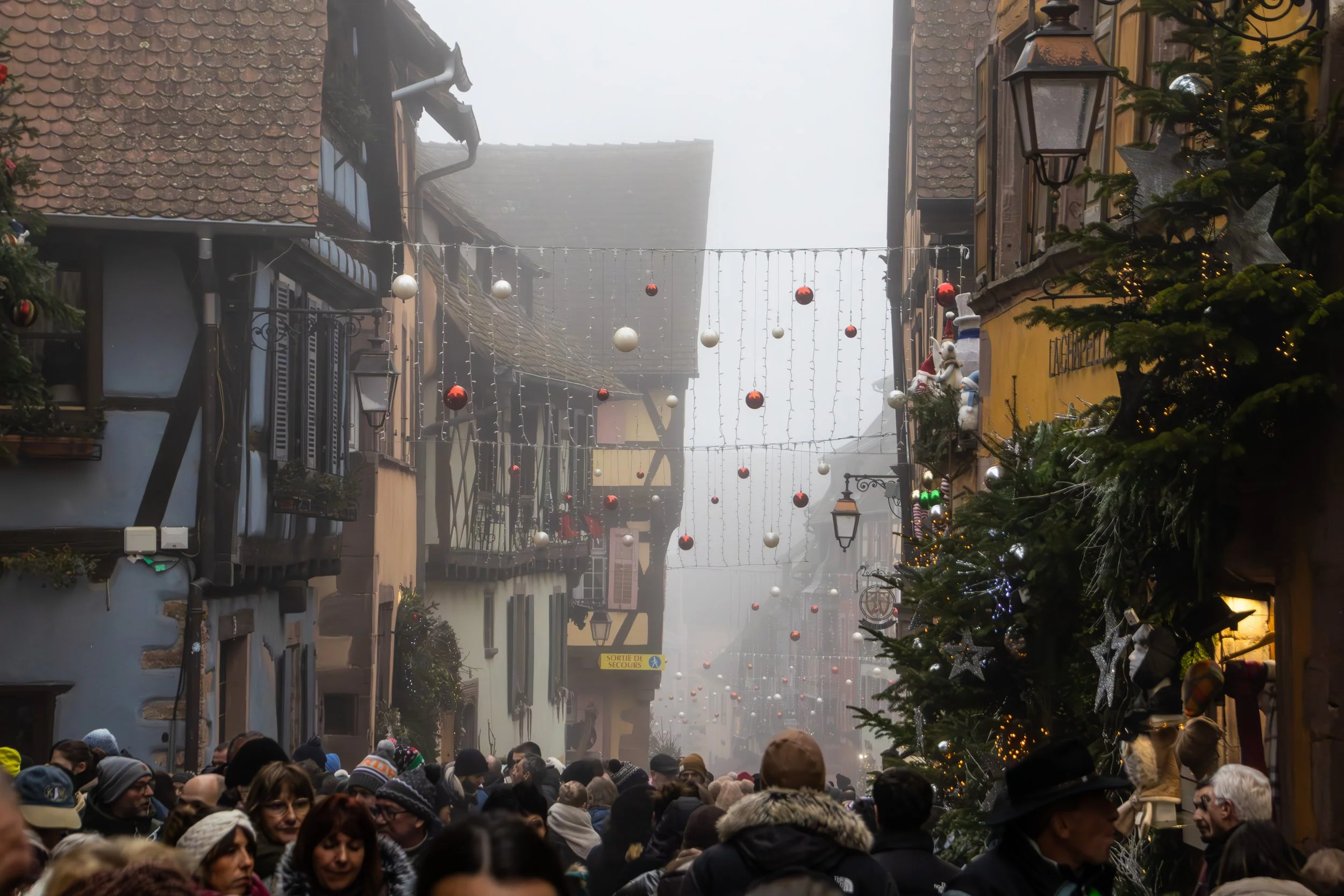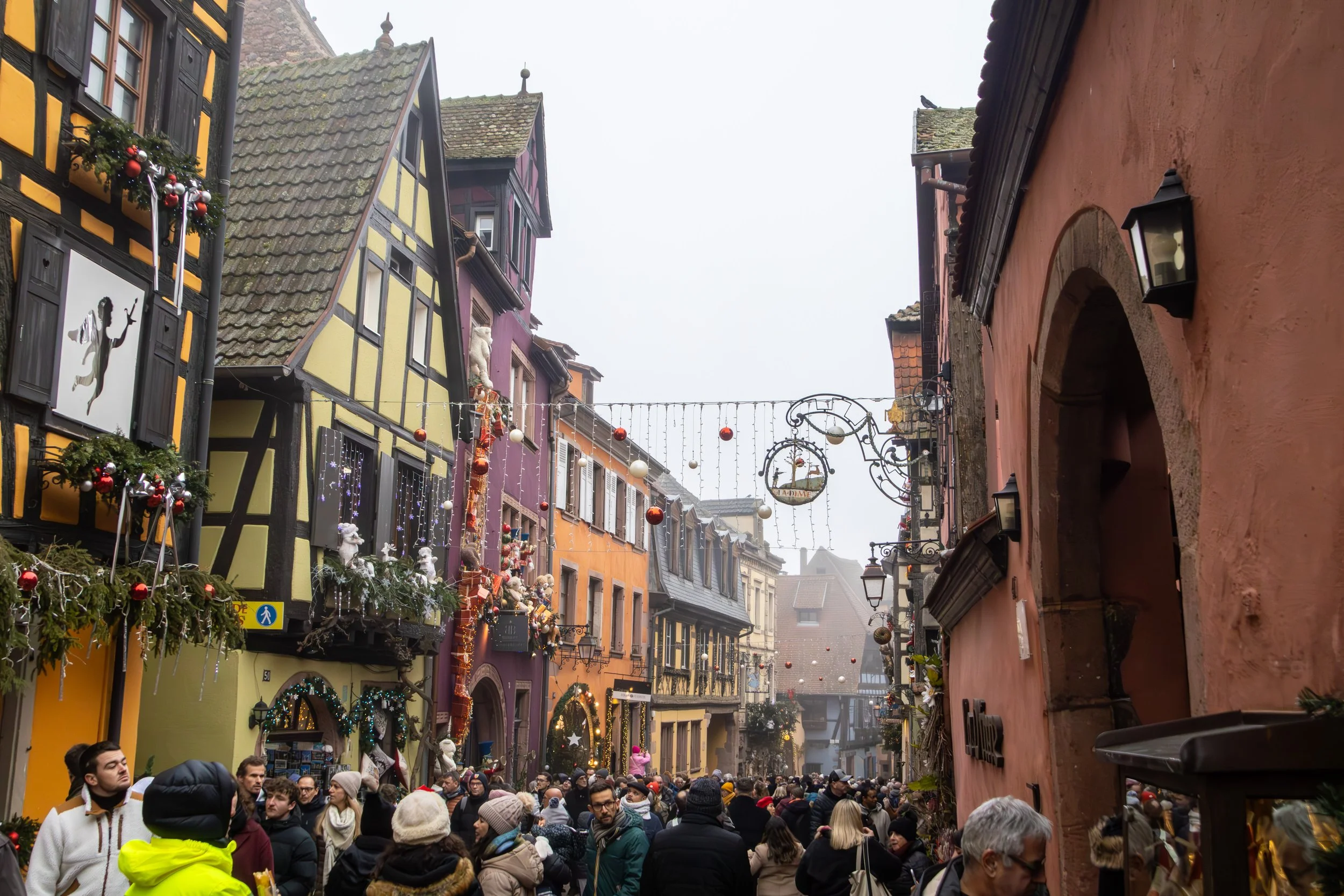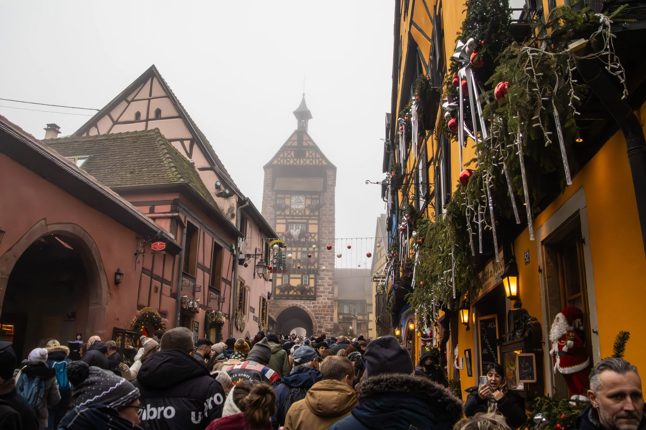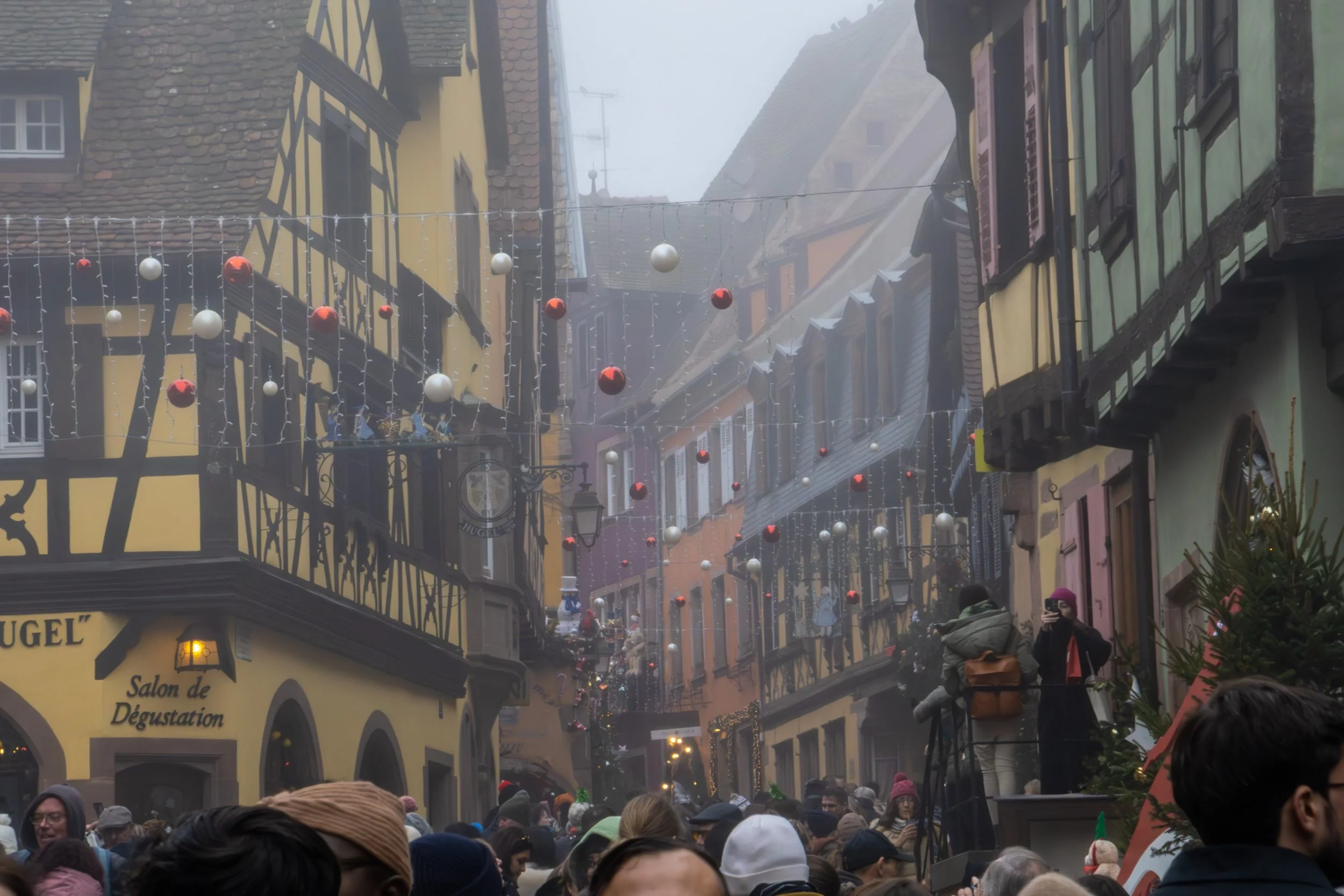 Anyway, Sélestat is about a ~20-minute drive from the places we’ll be visiting today! But this is not a historical expedition; we’re going to visit a few more present-day Christmas Markets! During the holiday season, Christmas Markets are an entire sub-category of tourism in Europe, especially central and northern Europe. You can find them all over the place, but Strasbourg, whose markets we covered in the previous article, is well-known to be one of the best around. But that market isn’t an island; a LOT of the small villages throughout this region have their own festivities. And today, we’re going to take a roadtrip to visit 2 of them. The towns are called Riquewihr and Kaysersberg.