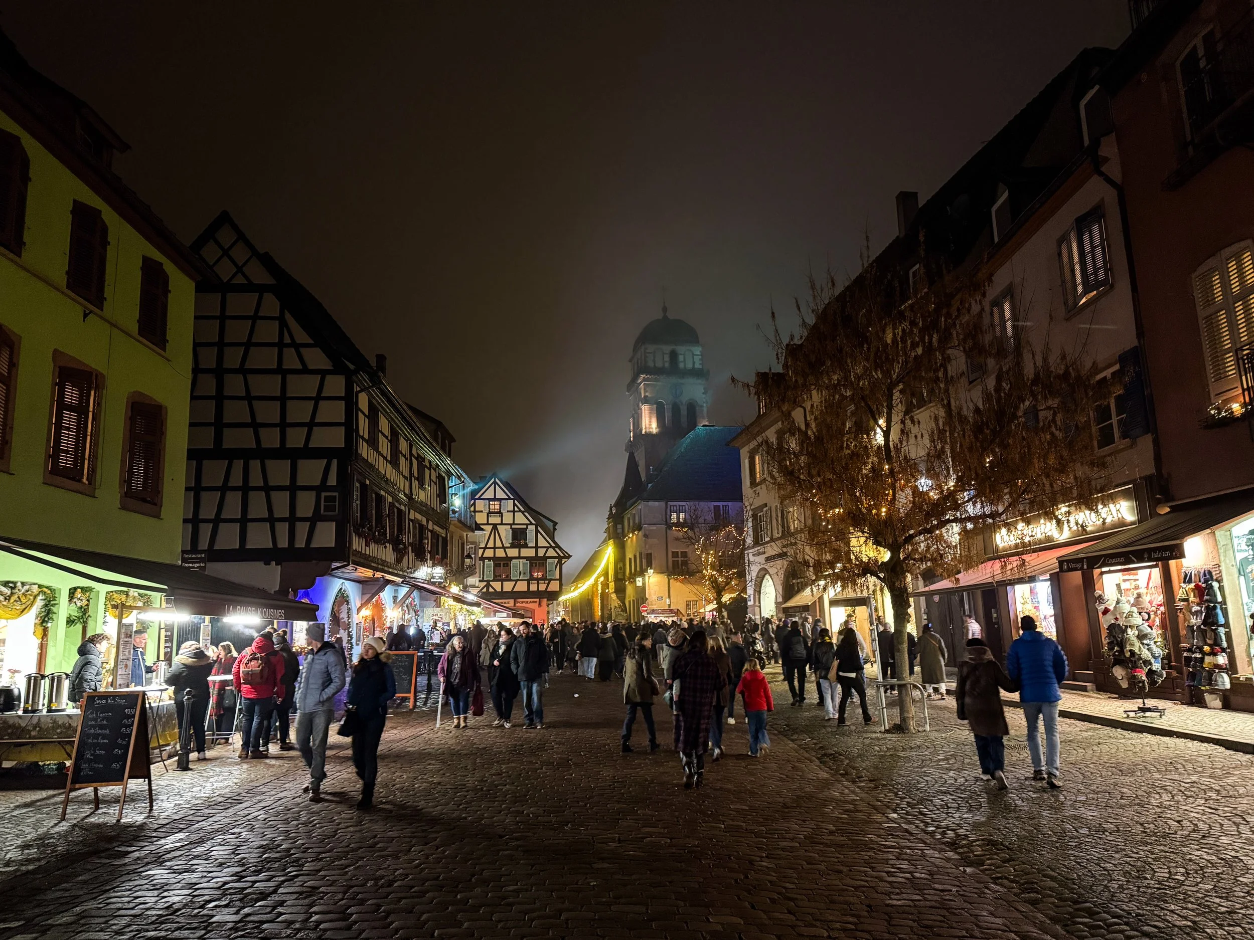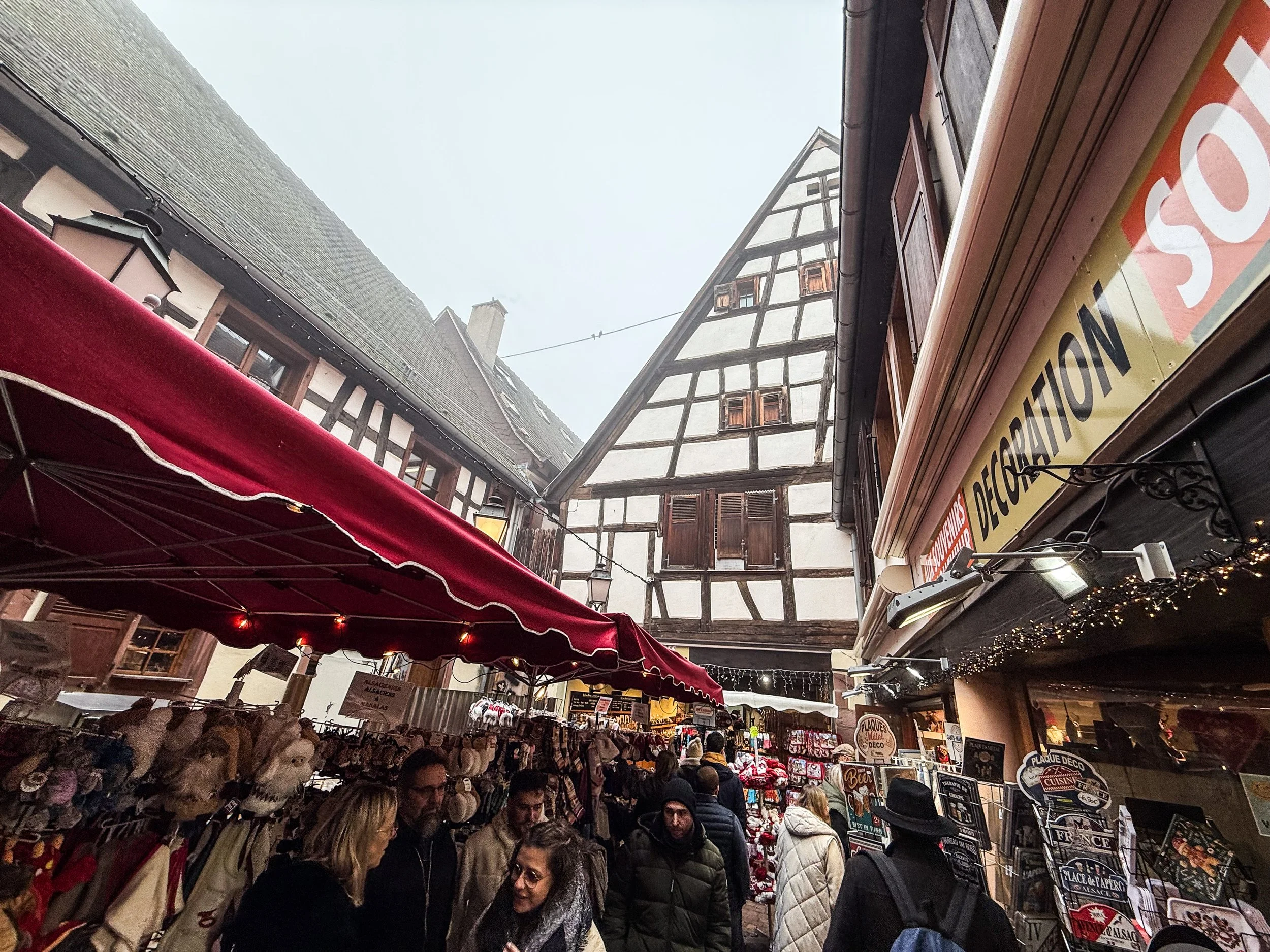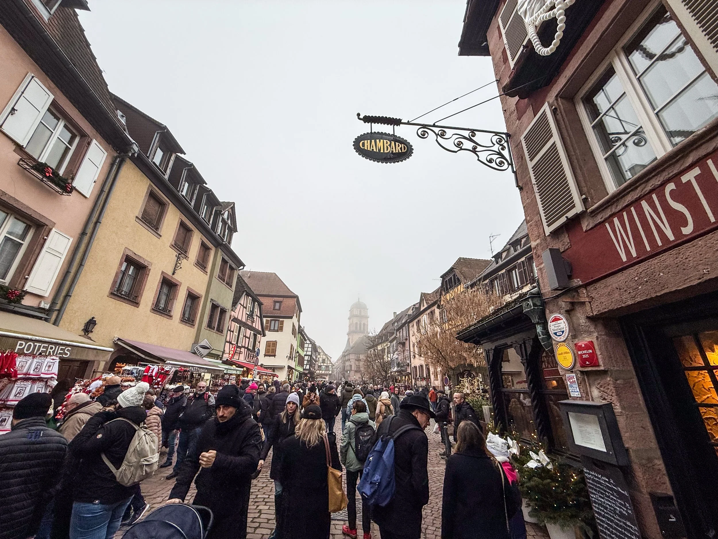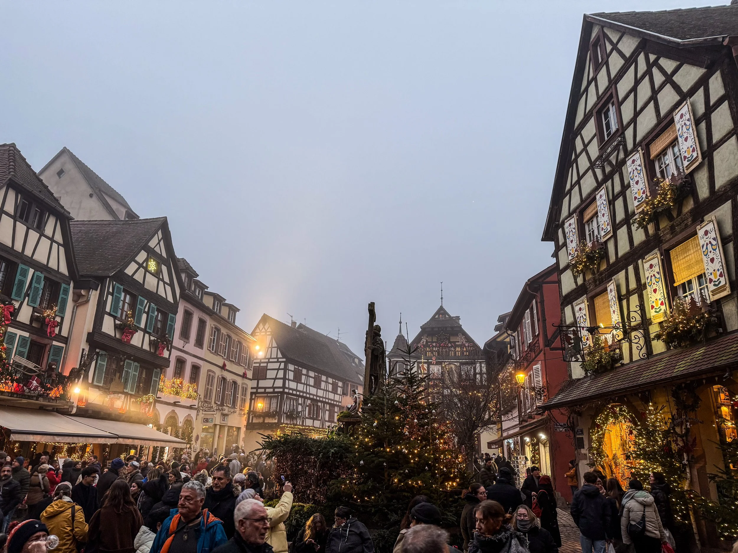 As I mentioned in the previous article, this visit to Alsace was FOGGY. I’ve experienced intense fog before, of course, but what I had not experienced until now was just how long the fog hung around. We spent multiple days in Alsace, and the entire region was covered in a thick blanket of fog the entire time. However, in the absence of snow, I felt that the fog lent a festive aura to the Christmas markets—as if we were in a perpetual blizzard. It made for some really cool pictures… but it was COLD. The level of moisture in the air amplified the cold temperatures to the point that I found myself shivering quite a few times throughout this day. Thank the lord almighty for the never-ending supply of vin chaud (hot mulled wine) available in these villages. Not only was it incredibly tasty, it also kept me warm(ish).