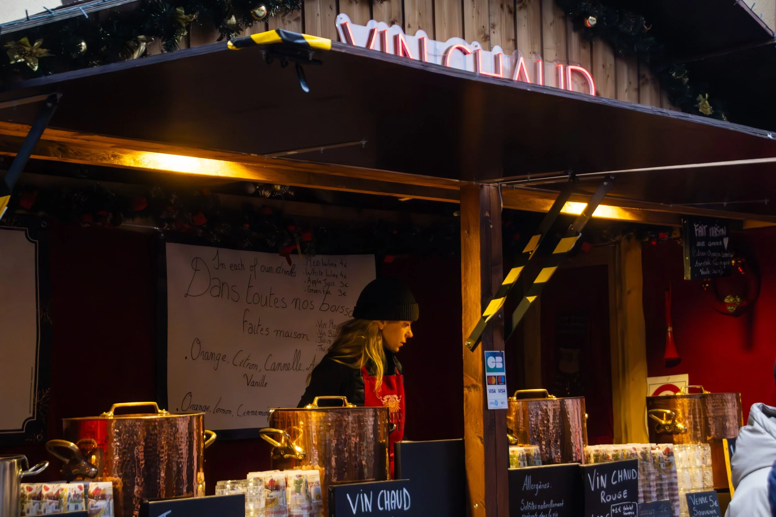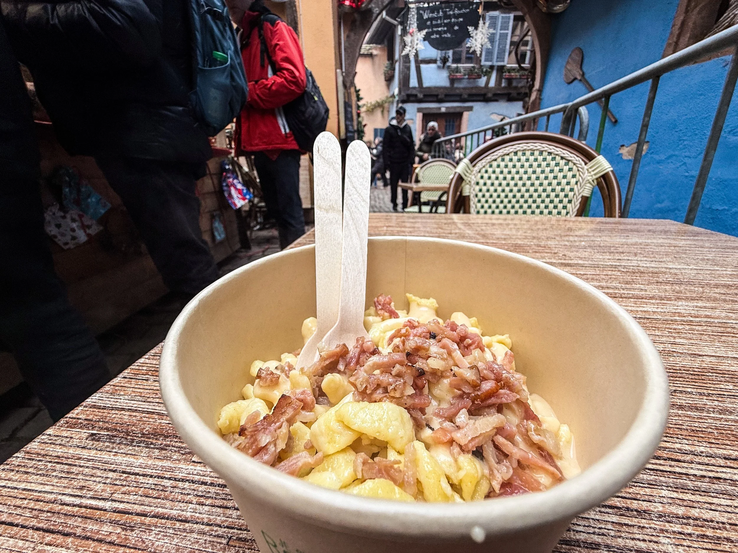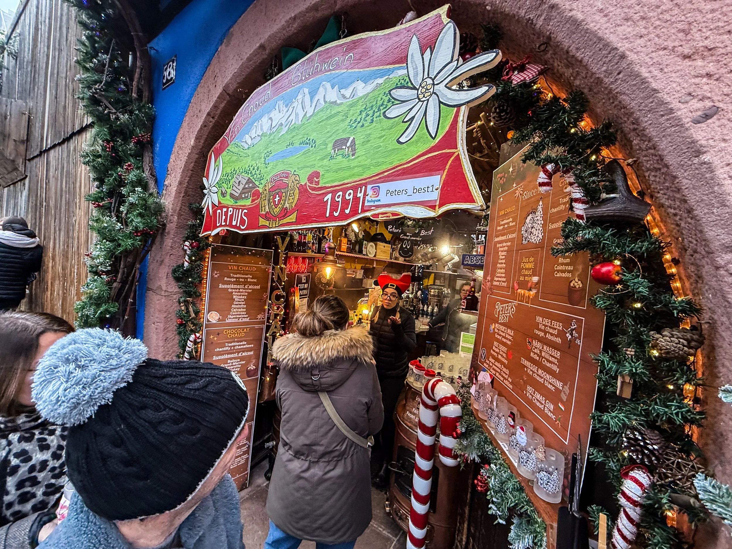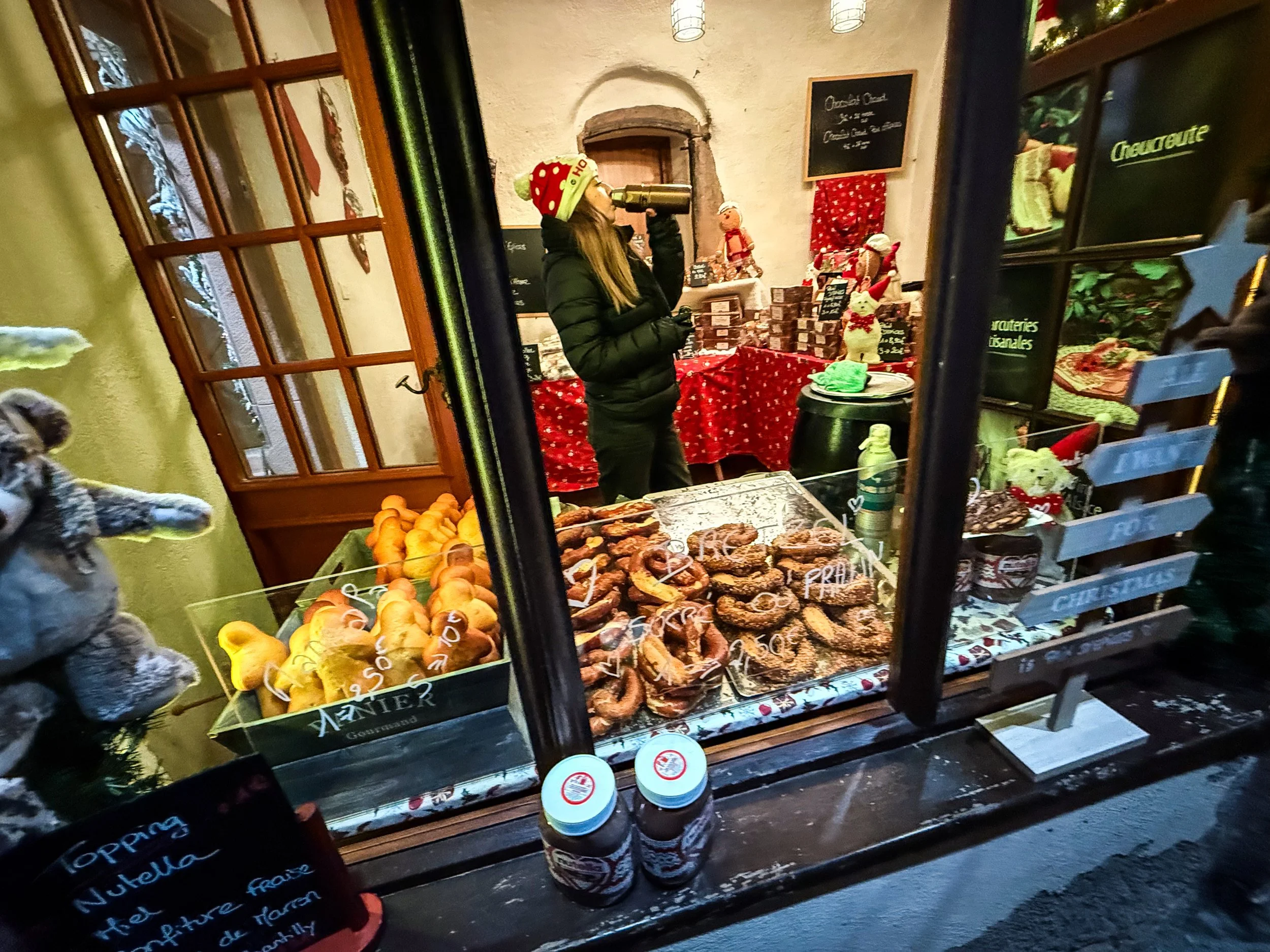 As I mentioned in the previous article, this visit to Alsace was FOGGY. I’ve experienced intense fog before, of course, but what I had not experienced until now was just how long the fog hung around. We spent multiple days in Alsace, and the entire region was covered in a thick blanket of fog the entire time. However, in the absence of snow, I felt that the fog lent a festive aura to the Christmas markets—as if we were in a perpetual blizzard. It made for some really cool pictures… but it was COLD. The level of moisture in the air amplified the cold temperatures to the point that I found myself shivering quite a few times throughout this day. Thank the lord almighty for the never-ending supply of vin chaud (hot mulled wine) available in these villages. Not only was it incredibly tasty, it also kept me warm(ish).