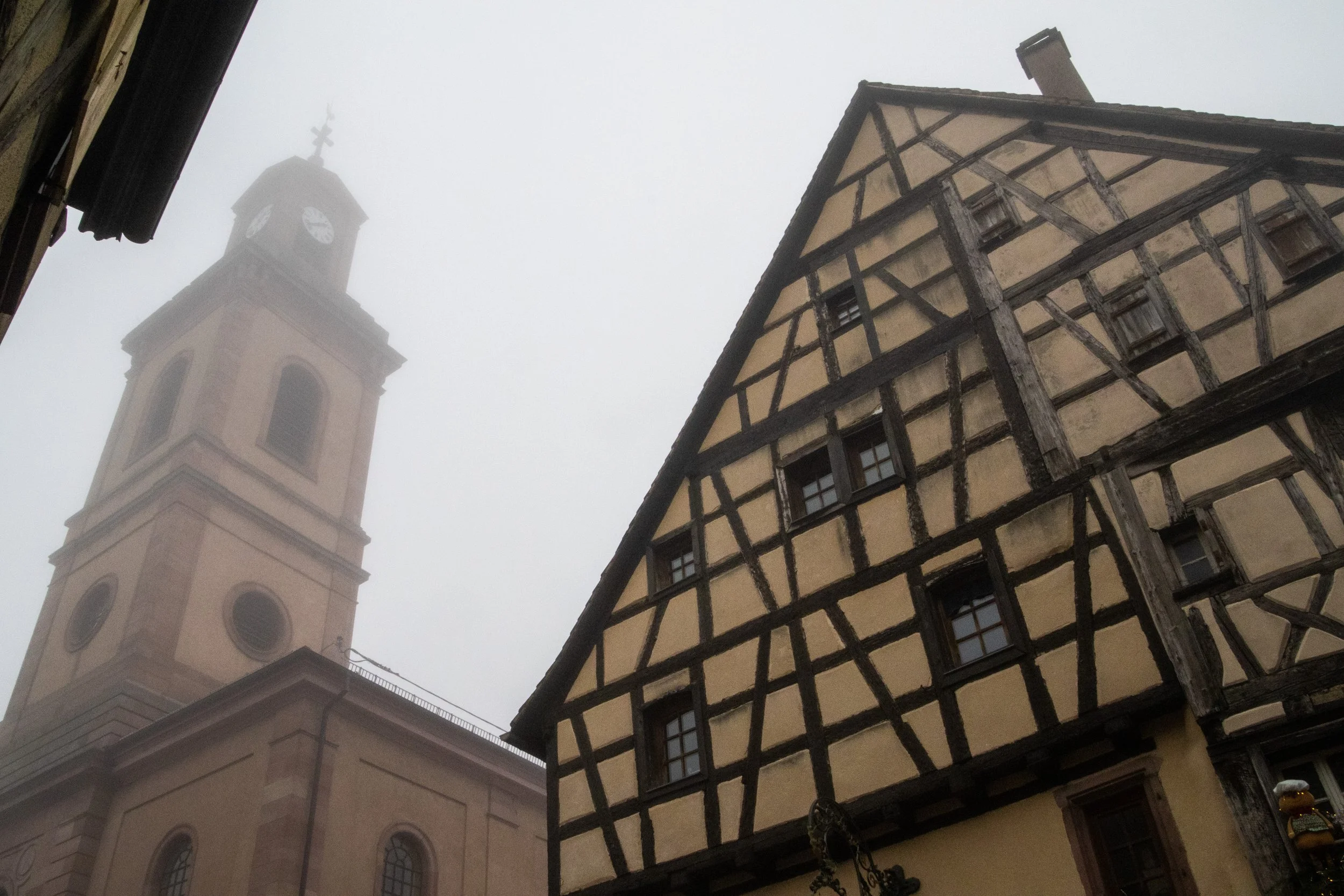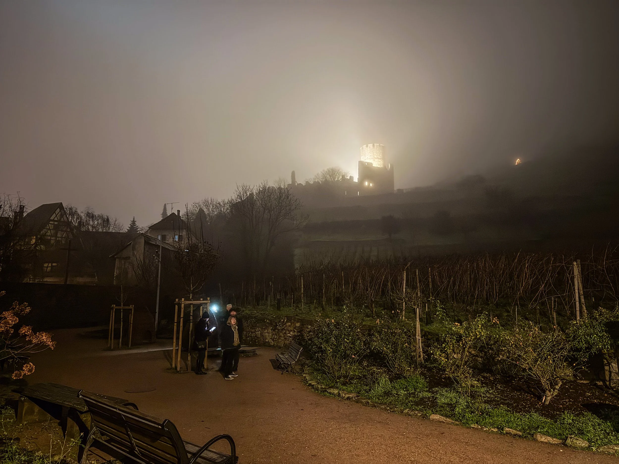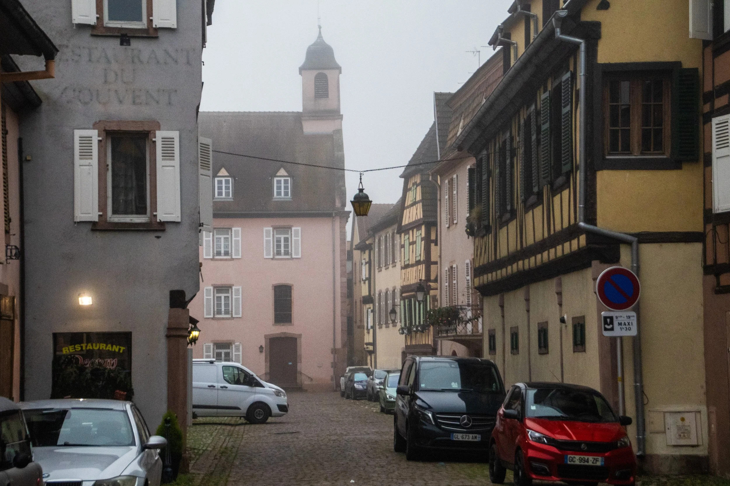 Though still quite small, Kaysersberg is much bigger than Riquewihr, carrying a population of just below ~5,000 people. It’s also nestled in the thick of Alsatian wine country; its ‘main drag’ is actually just 1 street removed from a vineyard built on a steep hill. This hill slopes upward to a Castle that dates back to 1227, when this region was part of Frederick II’s Holy Roman Empire. We stumbled onto this vineyard organically—which was cool—but the fact that there was also a castle was sitting just a short ways up the hill? Eh… in the fog, this was less obvious.