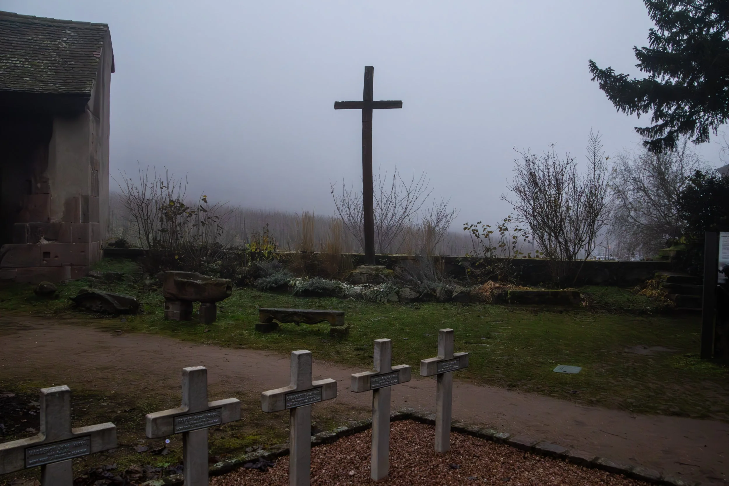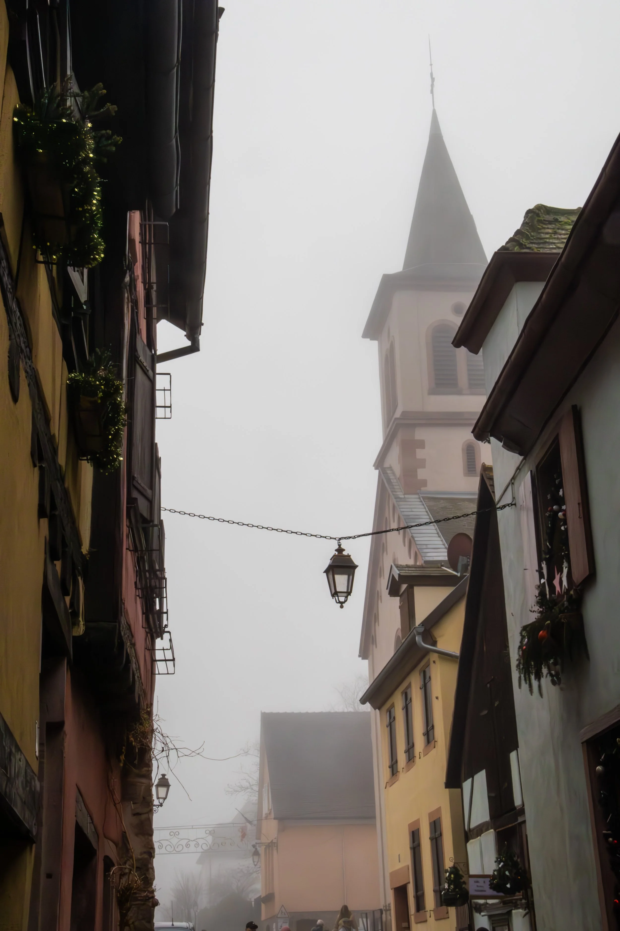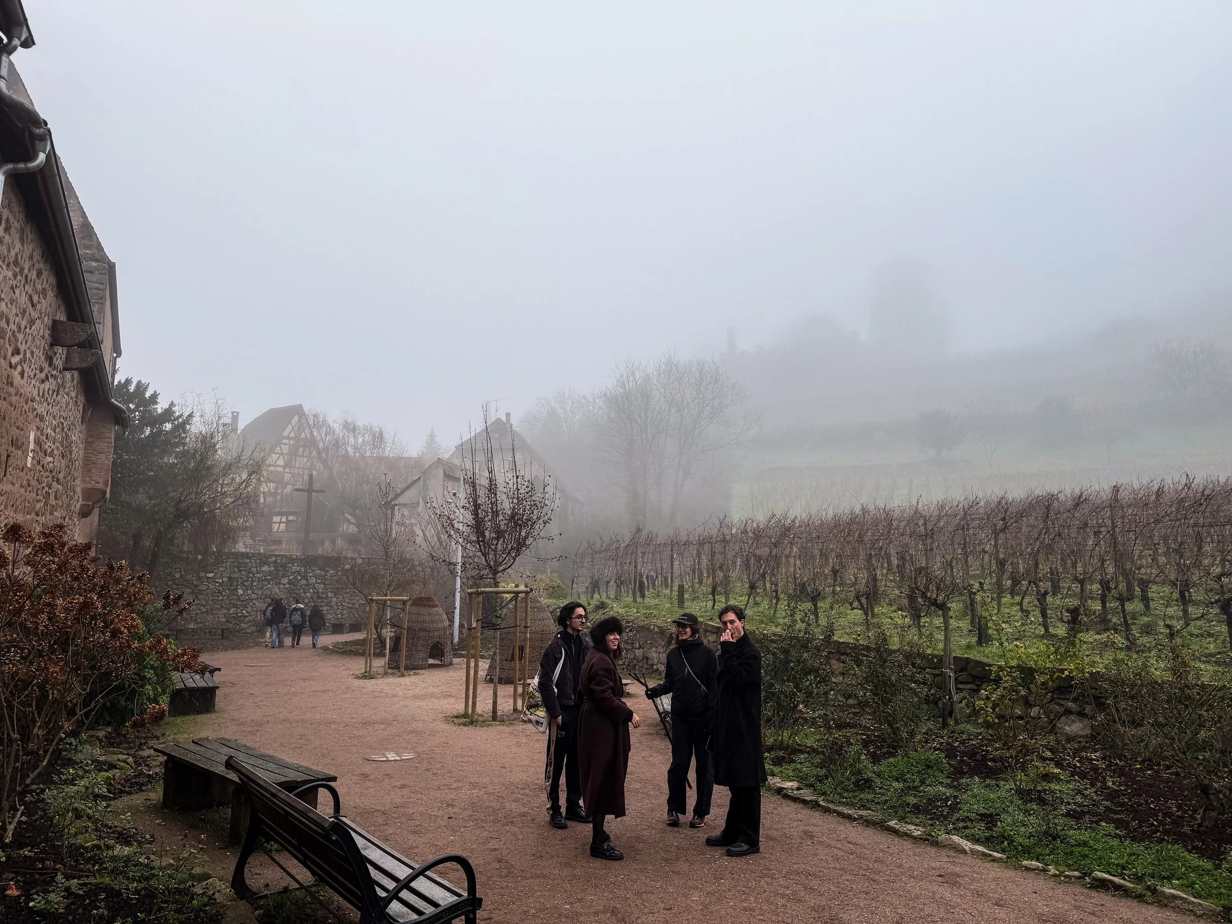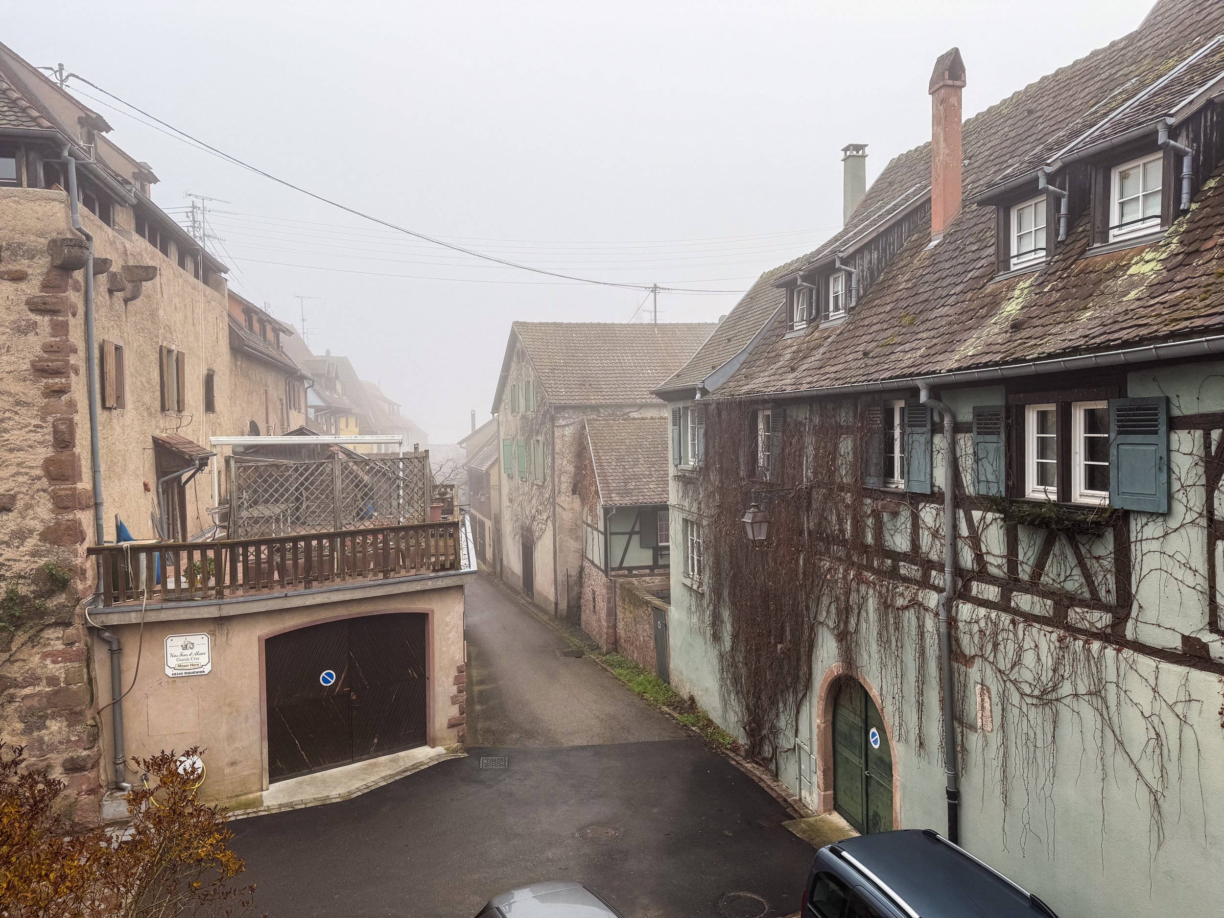 Though still quite small, Kaysersberg is much bigger than Riquewihr, carrying a population of just below ~5,000 people. It’s also nestled in the thick of Alsatian wine country; its ‘main drag’ is actually just 1 street removed from a vineyard built on a steep hill. This hill slopes upward to a Castle that dates back to 1227, when this region was part of Frederick II’s Holy Roman Empire. We stumbled onto this vineyard organically—which was cool—but the fact that there was also a castle was sitting just a short ways up the hill? Eh… in the fog, this was less obvious.