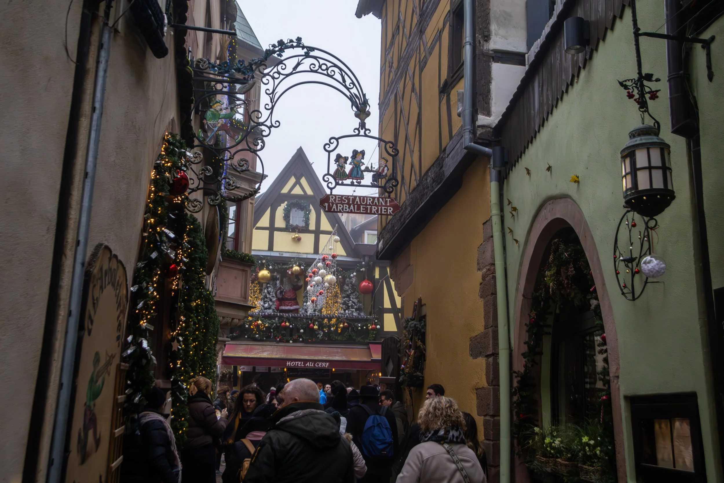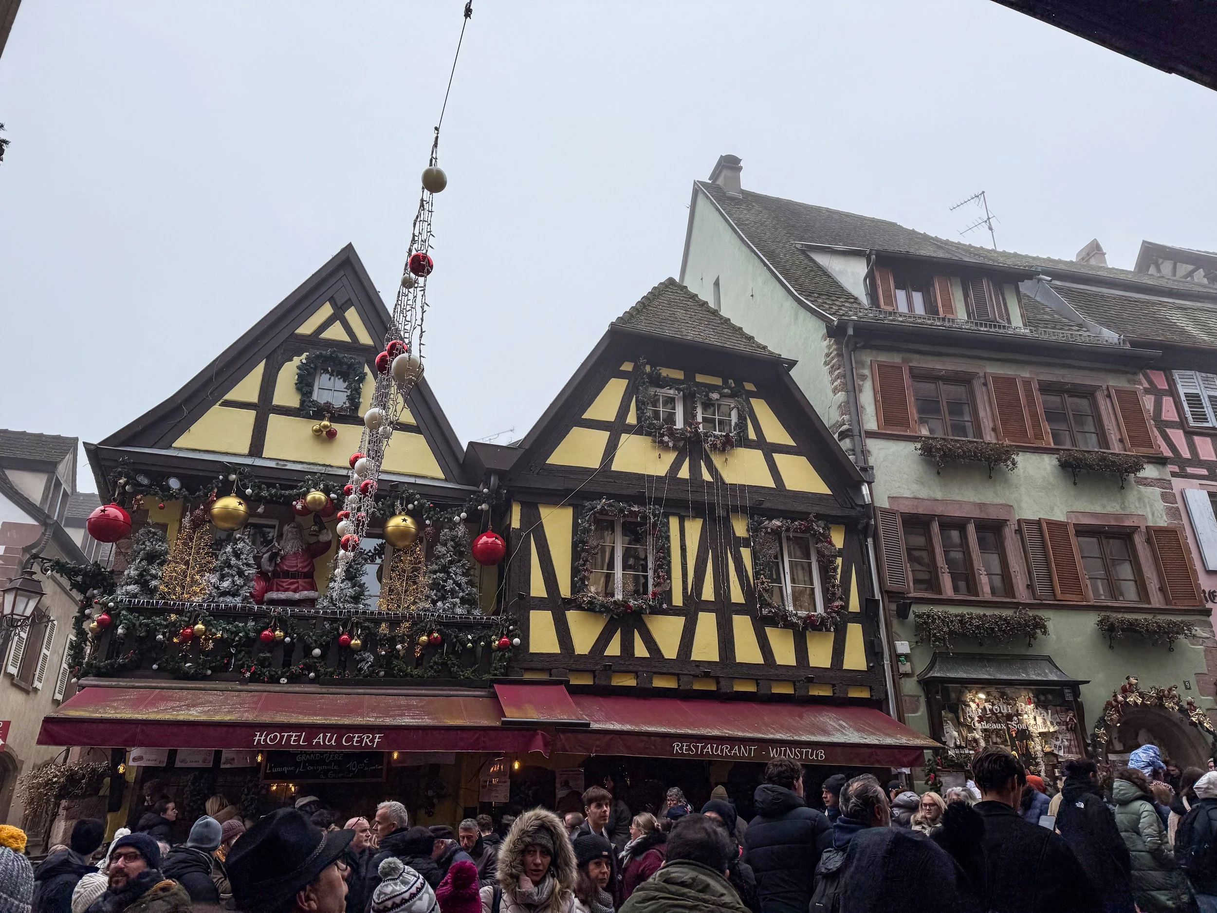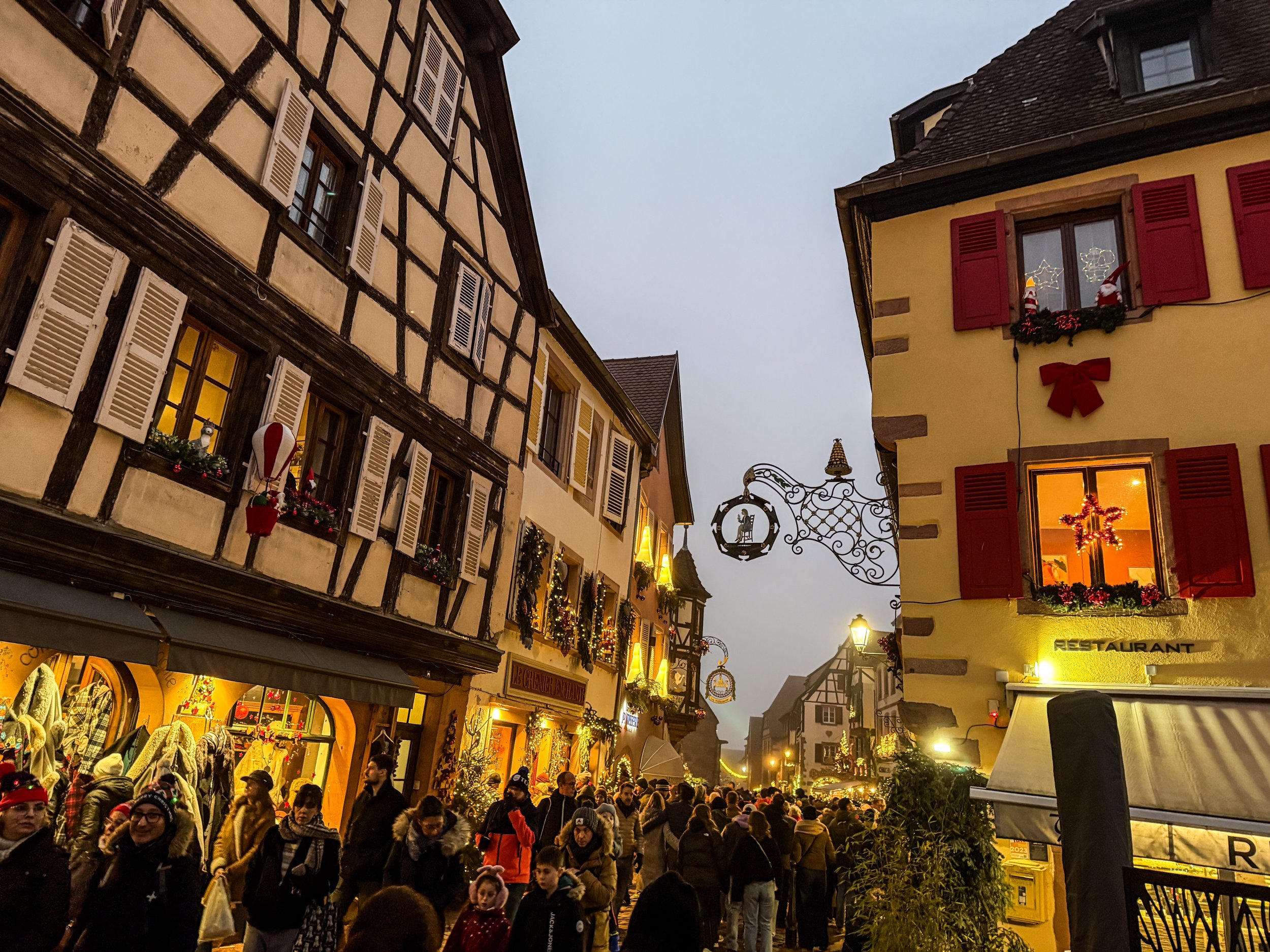 When Alsace was finally wrestled away from Nazi control in 1944, this region saw heavy winter fighting, which stretched through the holidays. The towns probably would have looked exactly the same (minus the decorations, crowds of happy people, and positive vibes). I did some research and found out that this specific village—Kaysersberg—was liberated from the Nazis in December 1944! And in December of 1949, Strasbourg—the Alsatian capital—was chosen as the seat of the newly created European Council, the body that would evolve to be European Parliament today. Strasbourg/Alsace was chosen in order to reinforce and celebrate its role as a bridge between France and Germany, as well as to symbolize broader European reconciliation.