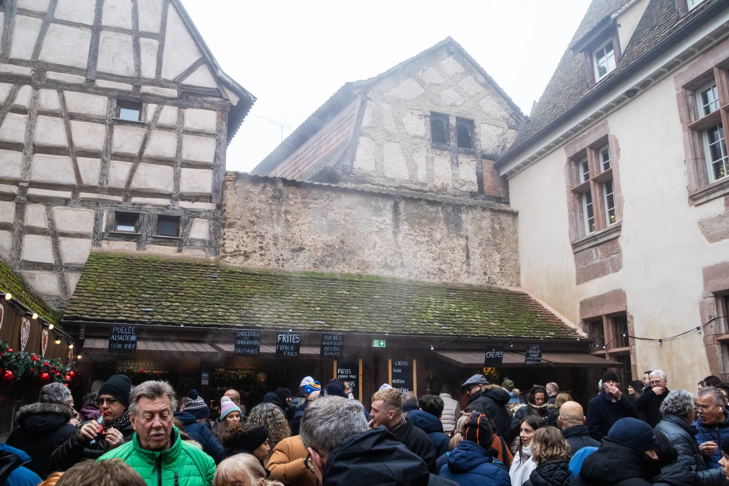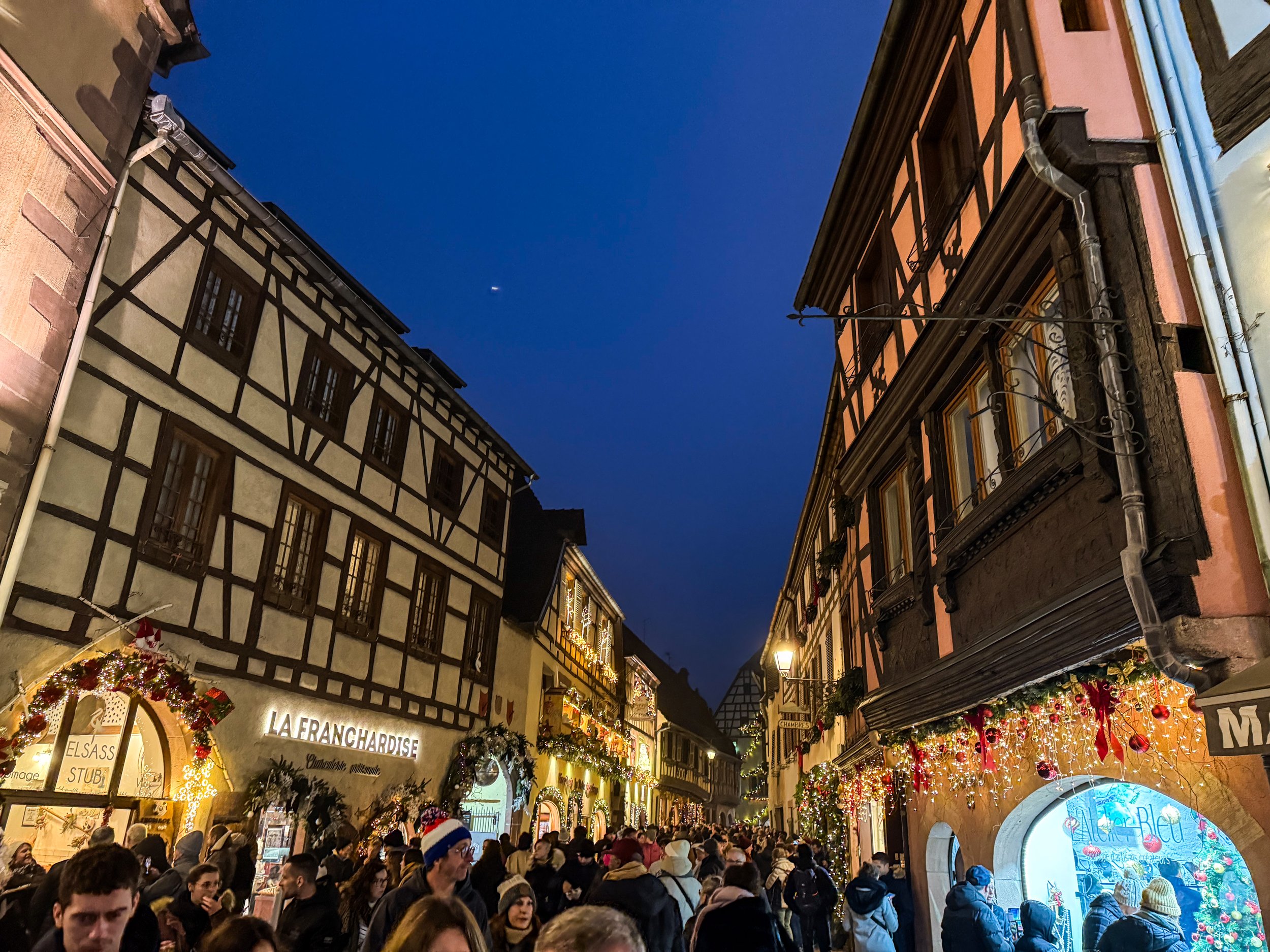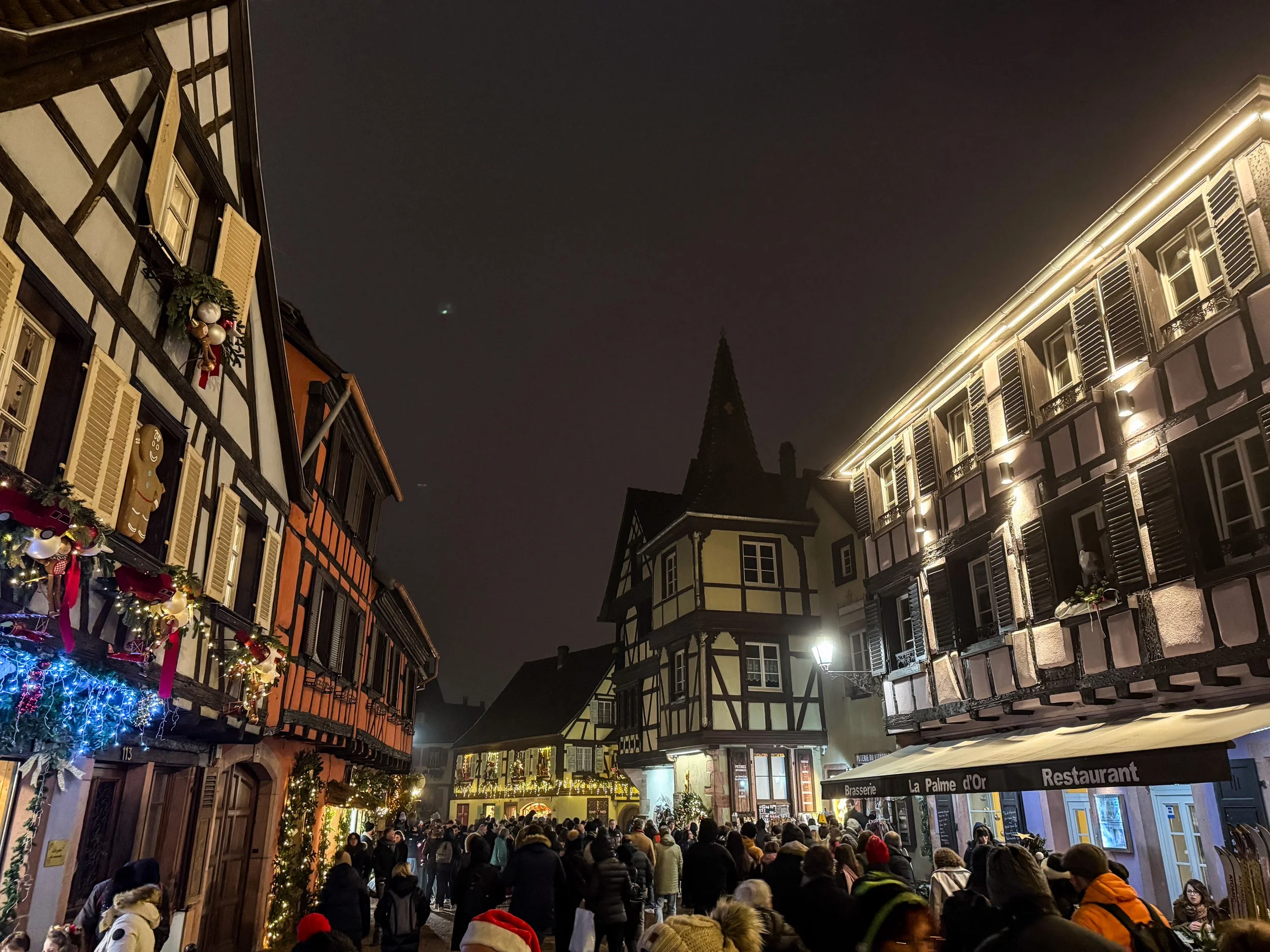 When Alsace was finally wrestled away from Nazi control in 1944, this region saw heavy winter fighting, which stretched through the holidays. The towns probably would have looked exactly the same (minus the decorations, crowds of happy people, and positive vibes). I did some research and found out that this specific village—Kaysersberg—was liberated from the Nazis in December 1944! And in December of 1949, Strasbourg—the Alsatian capital—was chosen as the seat of the newly created European Council, the body that would evolve to be European Parliament today. Strasbourg/Alsace was chosen in order to reinforce and celebrate its role as a bridge between France and Germany, as well as to symbolize broader European reconciliation.