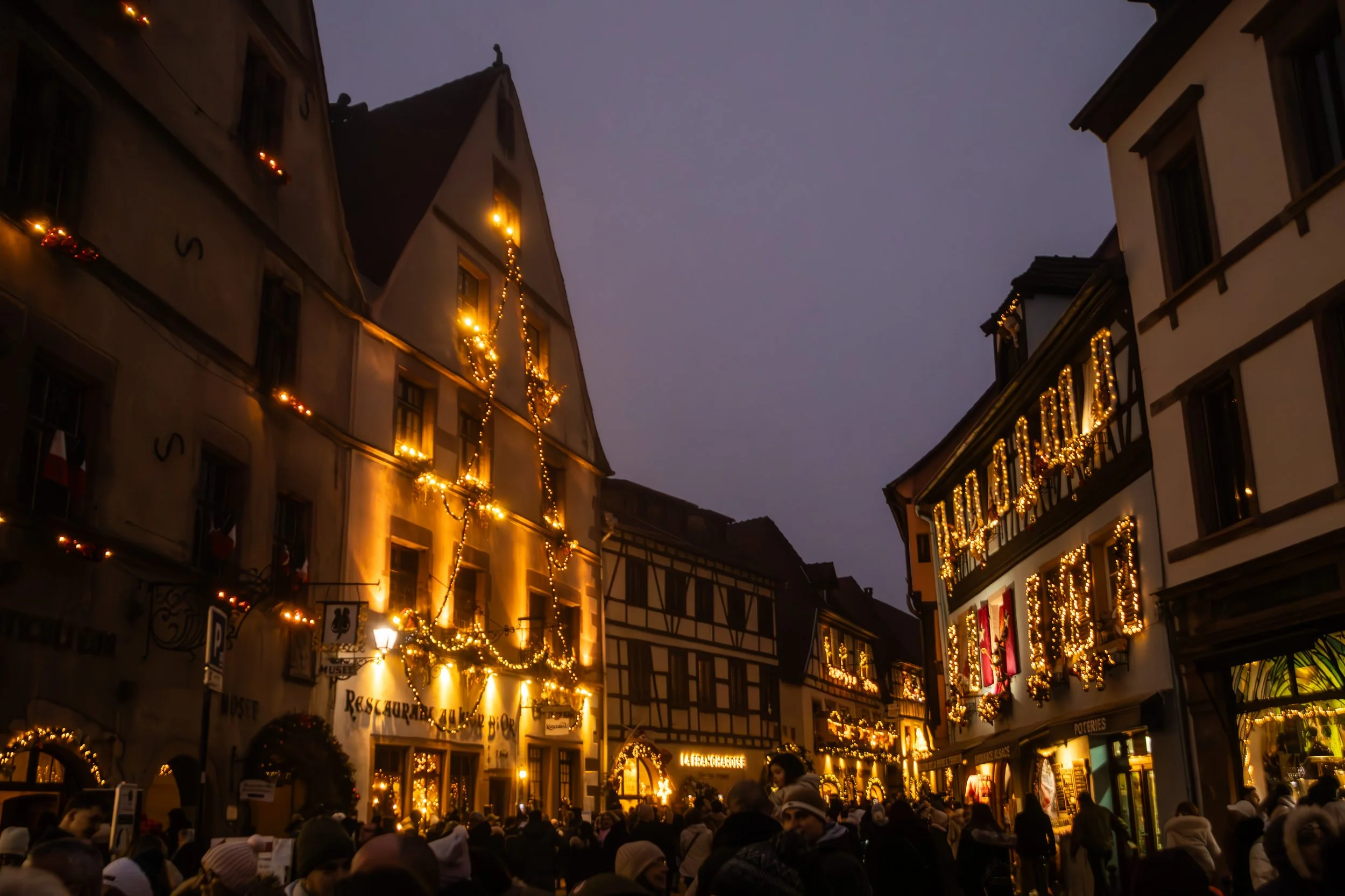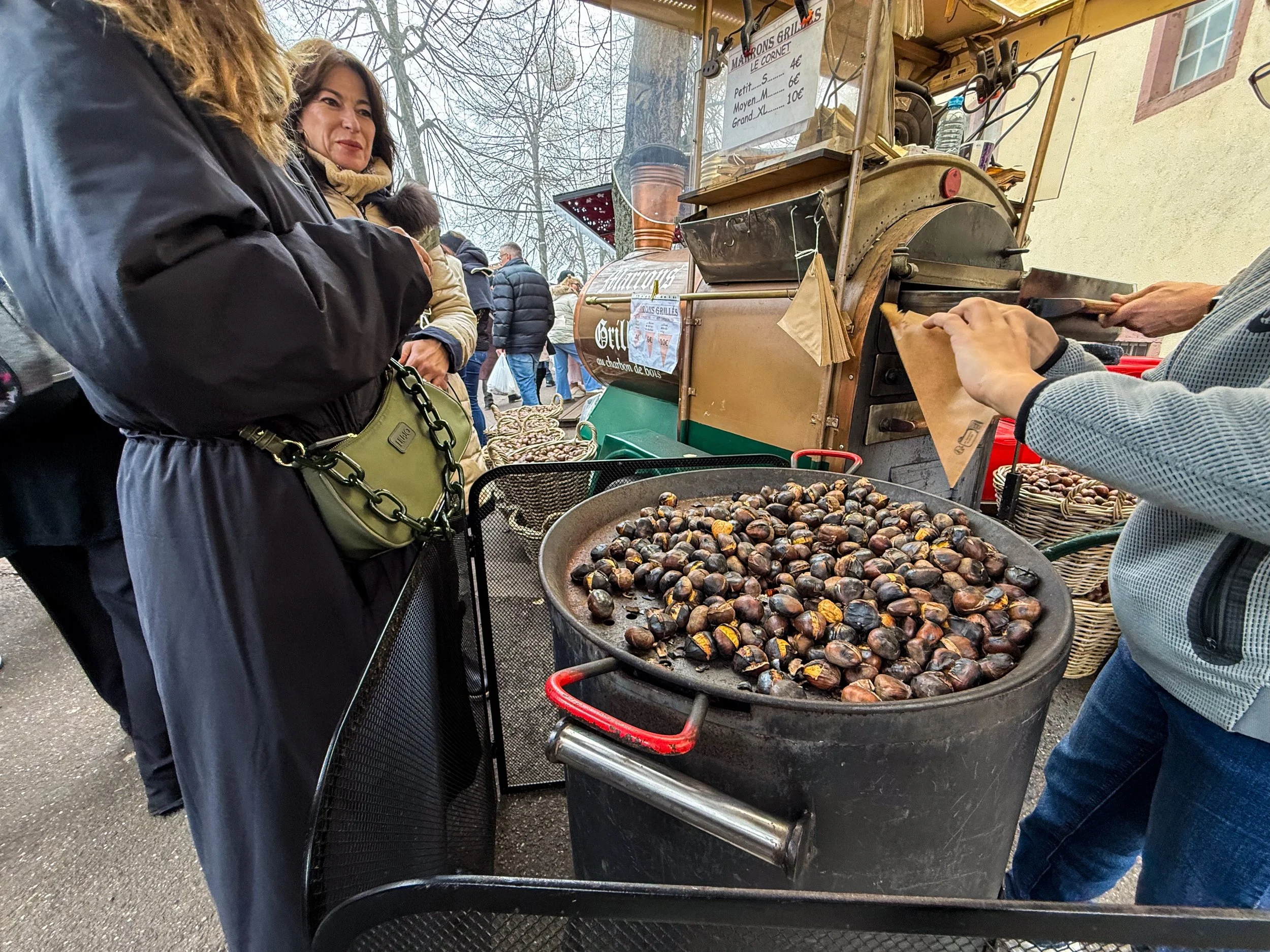 Now, let’s talk Christmas. Here’s a fun fact for you: the concept and tradition of the Christmas tree originated right here, in Alsace! The first written records of Christmas Trees anywhere in the world first appear here in 1521, in a small Alsatian village called Sélestat. If you’d imagined there were snowy spruce trees in the Israeli desert for the actual birth of Jesus… I’ve got bad news for you. 😬