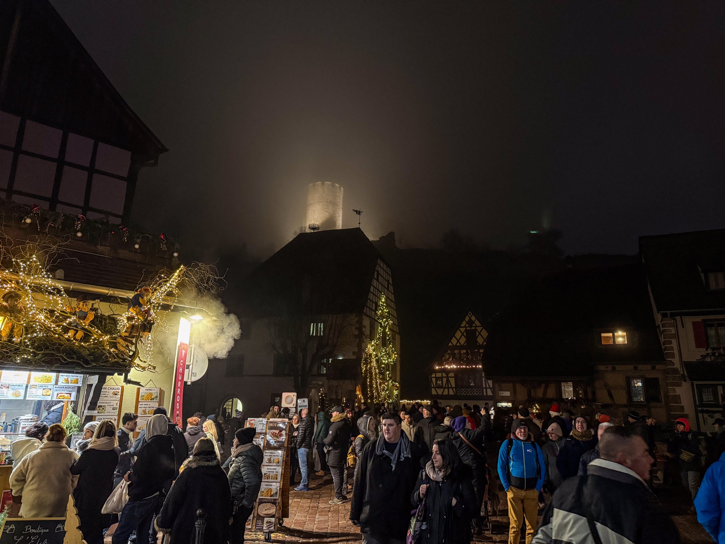 Moving on from Riquewihr, we now arrive at our second and final village of the day. What little daylight had even managed to penetrate this fog in the first place was beginning to fade by the time we arrived here, teeing us up to watch the town move in unison to light up its Christmas decorations. It did not disappoint… but first, some info on Kaysersberg.