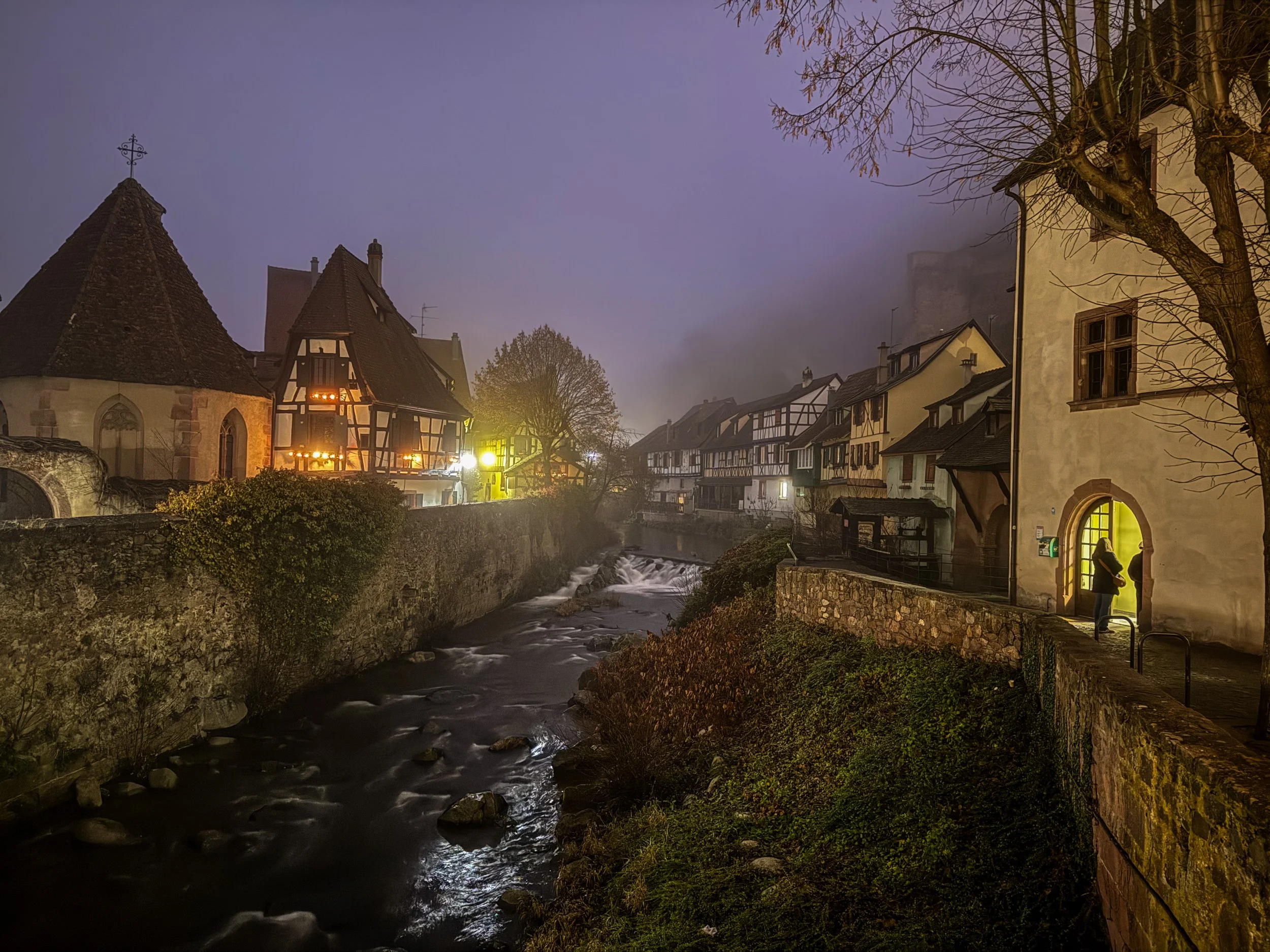 However, once I had identified this shape shrouded in fog at the top of the hill, I would start to look for it from the streets of Kaysersberg as I walked through town. In the gallery at the end of this article, once night fell, you will see it towering over the streets, lights illuminating its shape through the fog. But before we get to night fall, let me show you a bit of this town in the “light” of day…