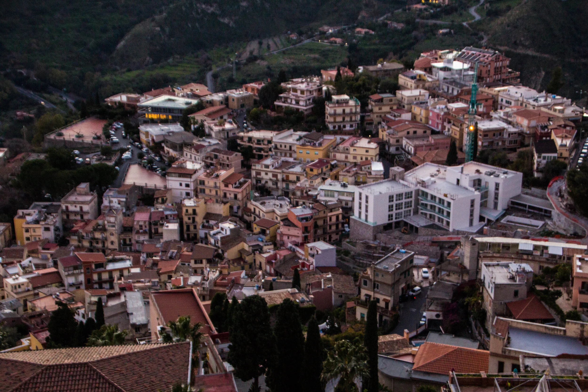 After more food and coffee, as well as a long walk back to the car, we were ready to catch what I was sure was going to be an epic sunset. I pulled out my maps app, and we were off! The cliff-side roads surrounding Taormina were not any easier to navigate in the dimming light, but against all odds, I was able to successfully direct us around the cliff and up the other side of the ridge. Let me tell you, this was about a million times easier than walking.