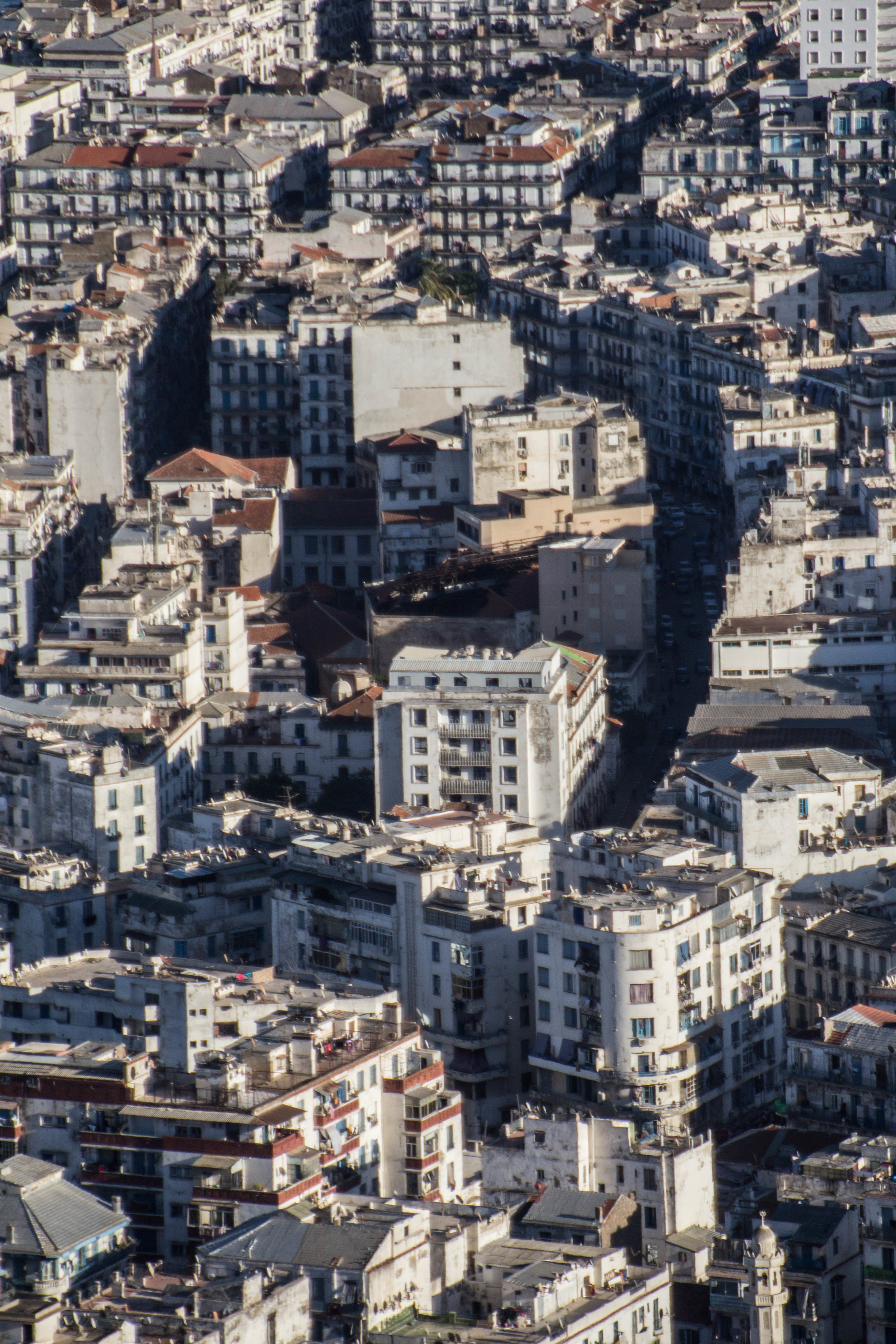 Looking out from this point, there was one main ridge that separated us from the main area of Algiers. Tucked away beneath us was a small quarry, but the hillside surrounding us was developed with the quintessential white buildings that are typical of Algiers. However, around the corner, we could see the French rooftops of downtown Algiers stretching out before us. We have my zoom lens to thank for the pictures of those rooftops below.